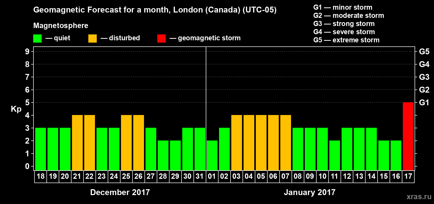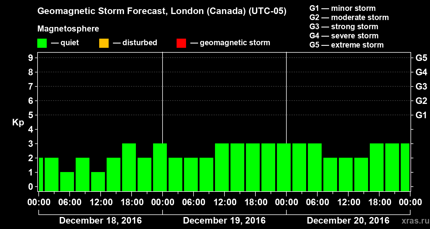 Geomagnetic storm forecast in London (Canada) for Dec 18, 2016