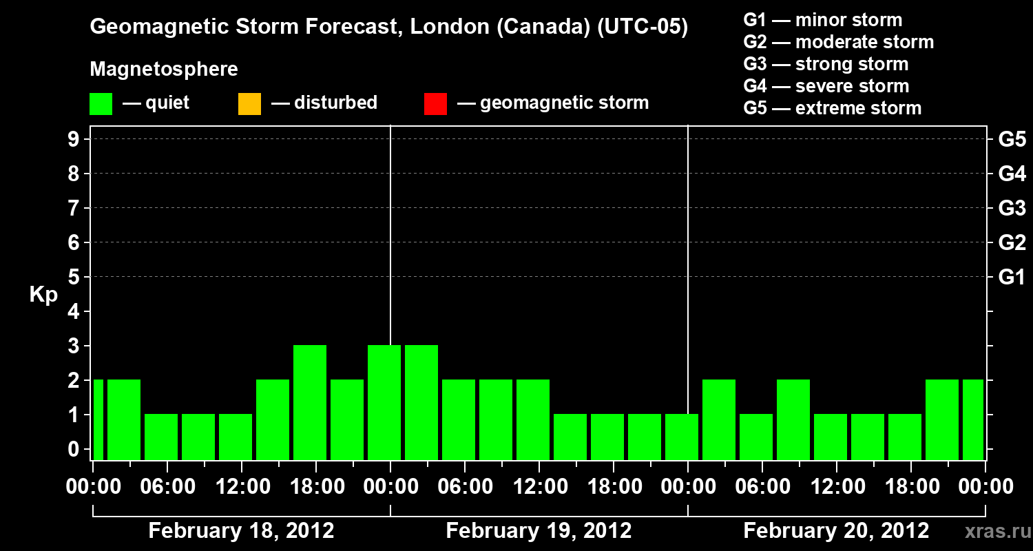 Geomagnetic storm forecast in London (Canada) for Feb 18, 2012