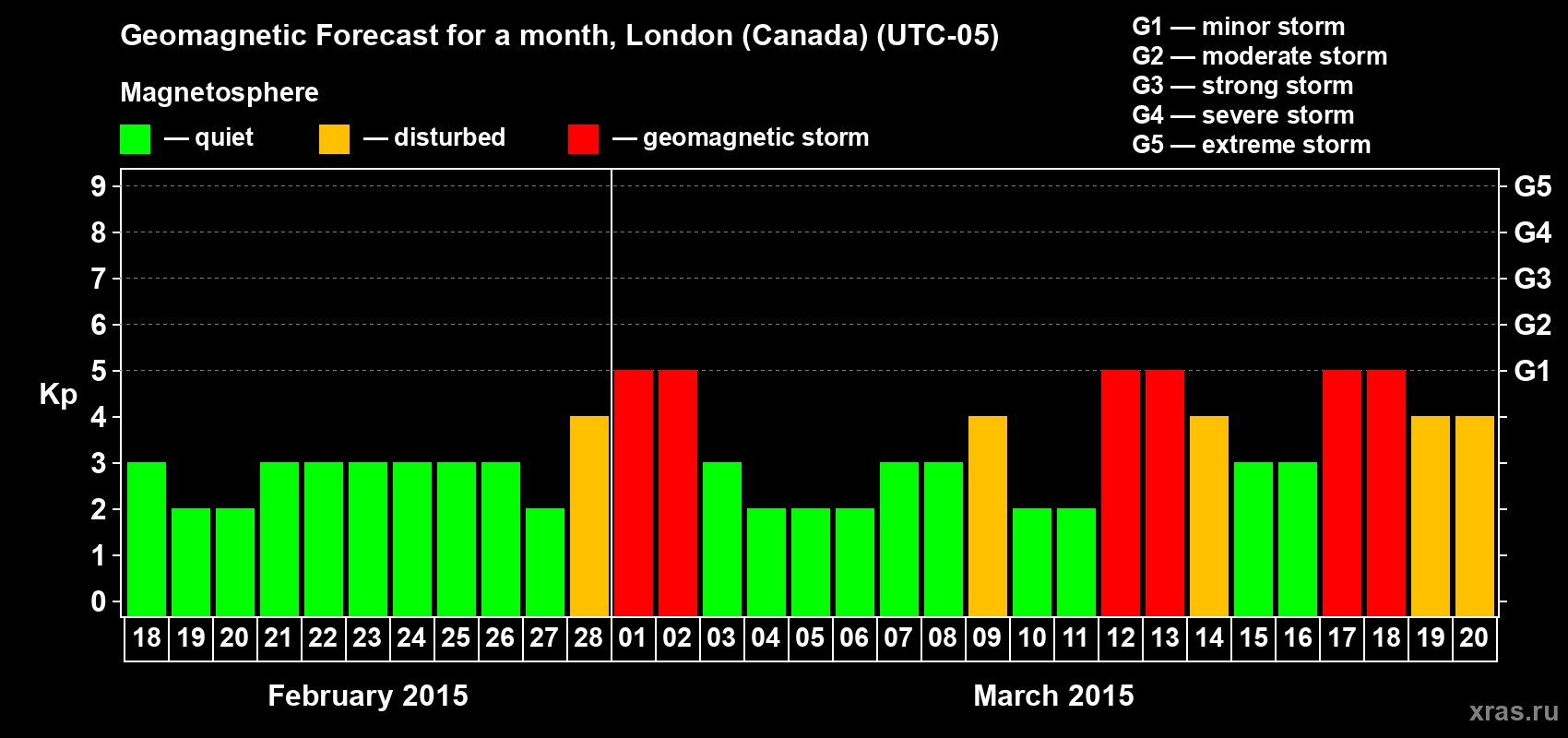 Geomagnetic storm forecast in London (Canada) for Feb 18, 2015