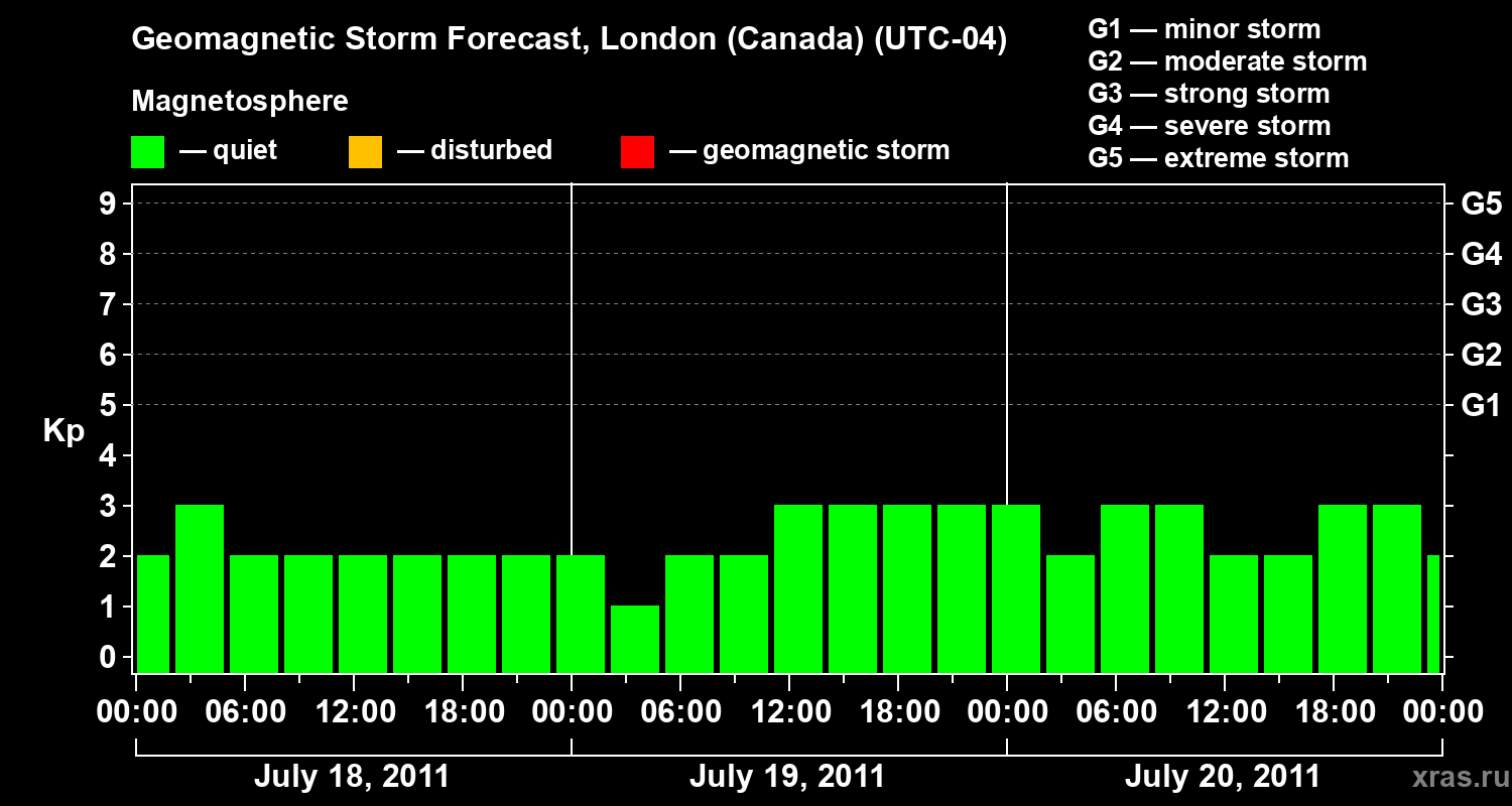 Geomagnetic storm forecast in London (Canada) for Jul 18, 2011