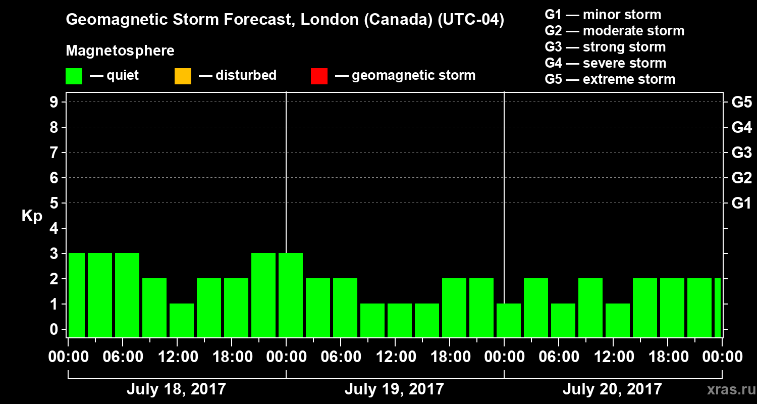 Geomagnetic storm forecast in London (Canada) for Jul 18, 2017