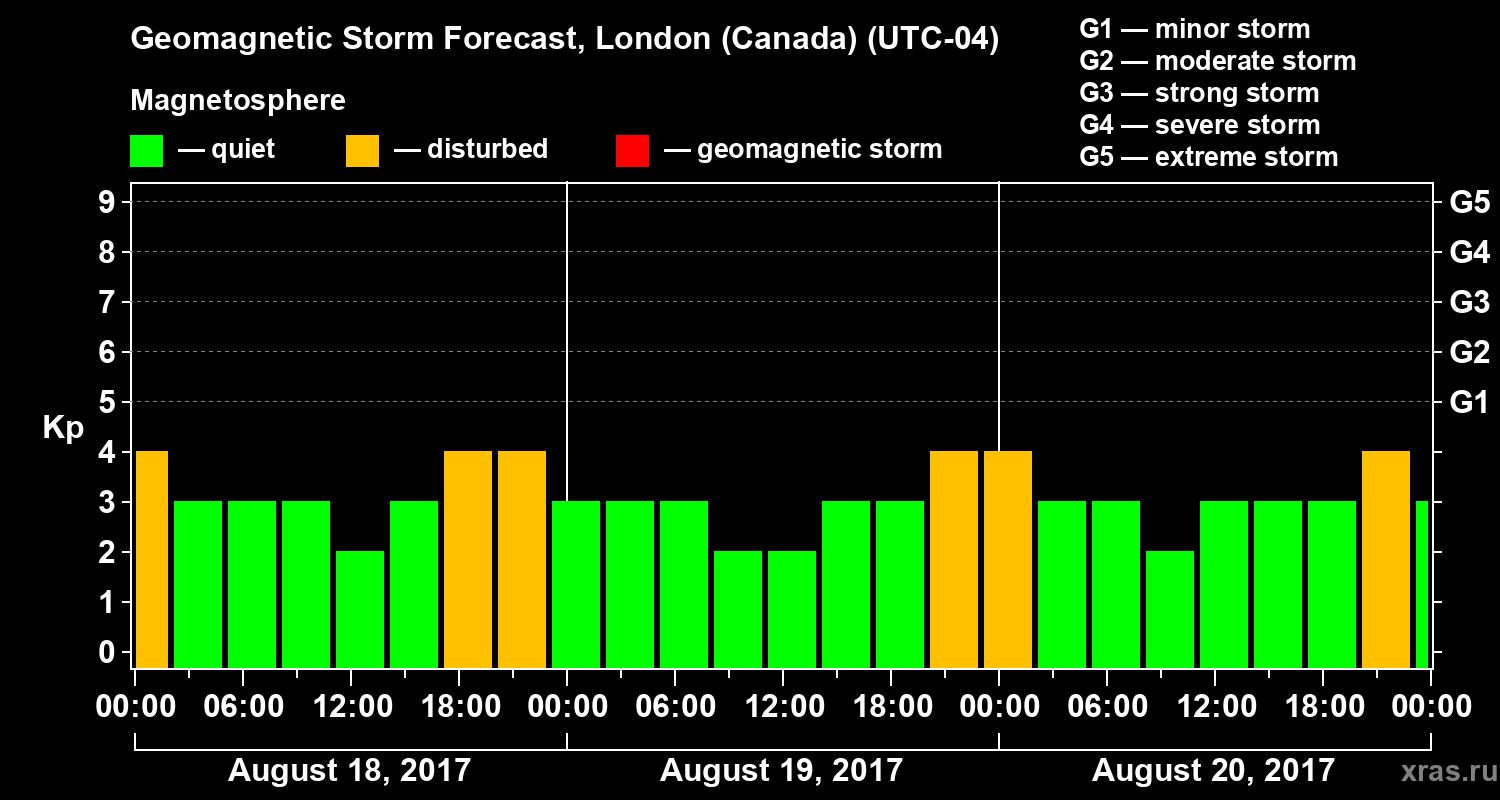 Geomagnetic storm forecast in London (Canada) for Aug 18, 2017