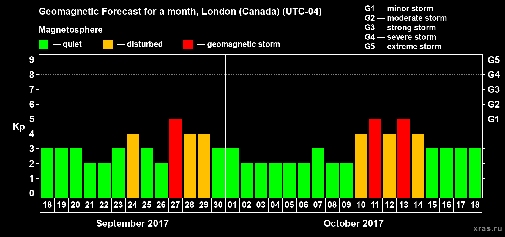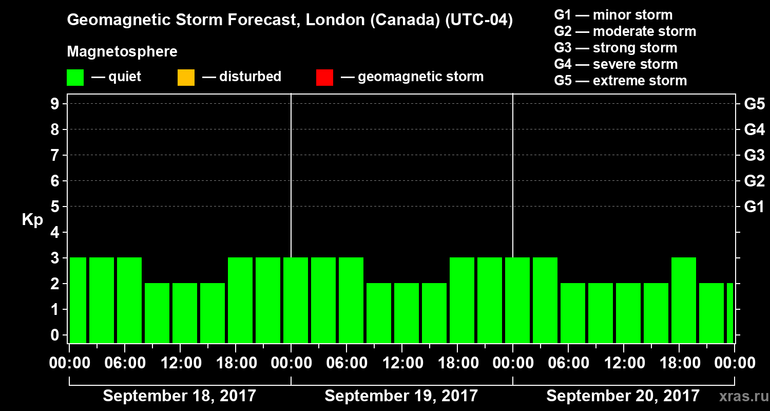 Geomagnetic storm forecast in London (Canada) for Sep 18, 2017