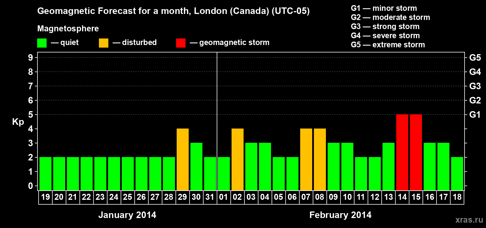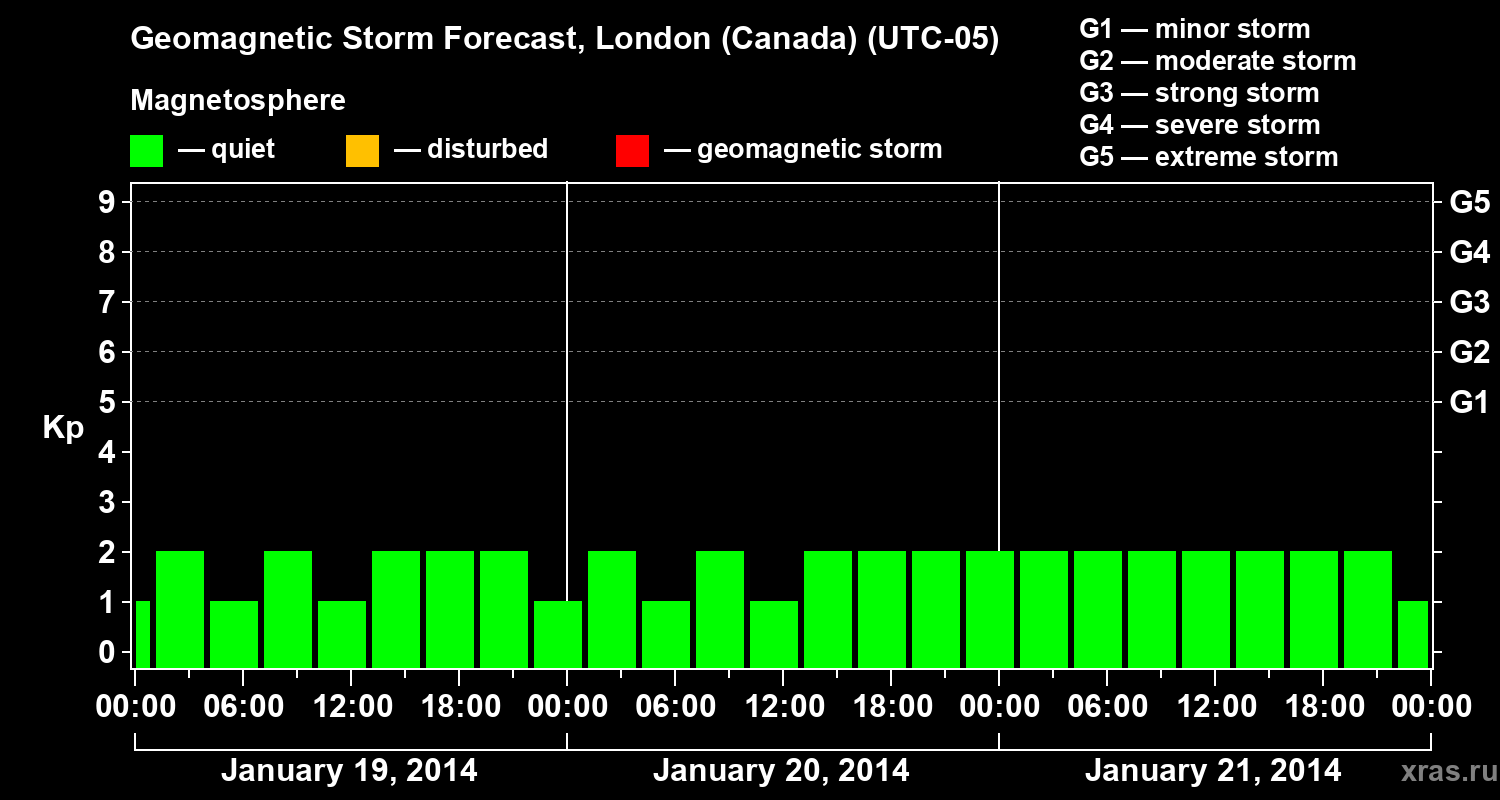 Geomagnetic storm forecast in London (Canada) for Jan 19, 2014