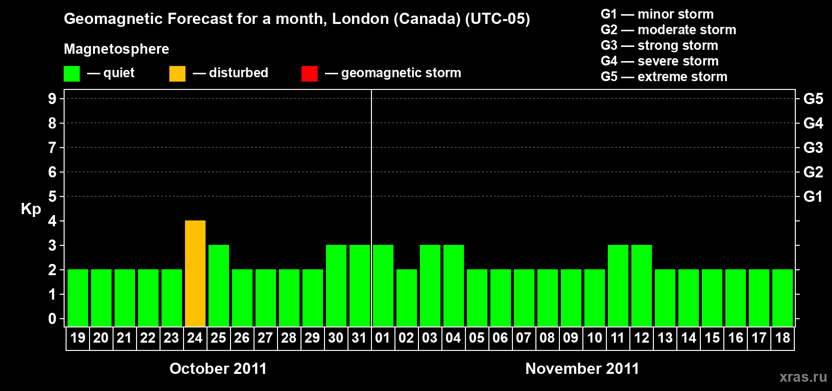 Geomagnetic storm forecast in London (Canada) for Oct 19, 2011