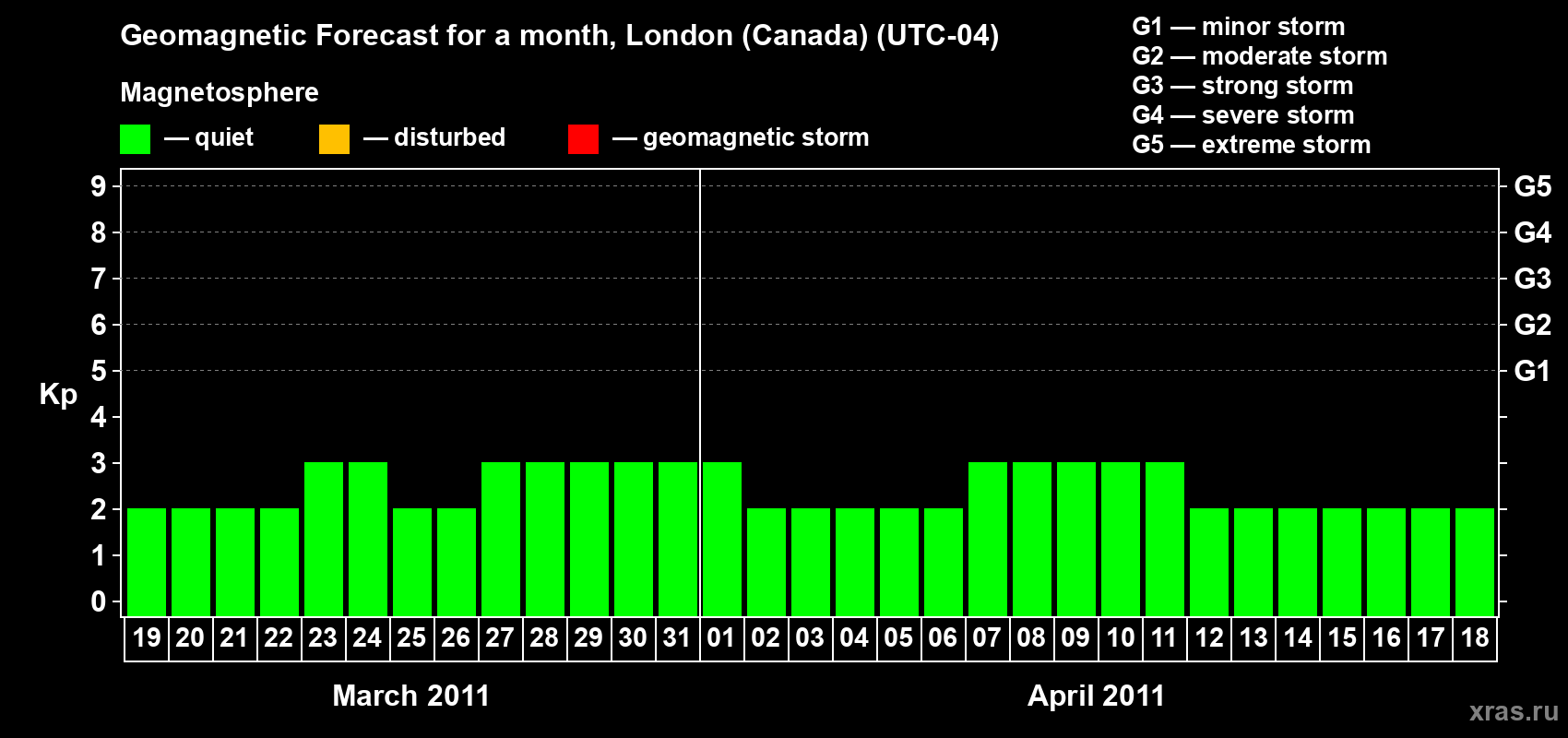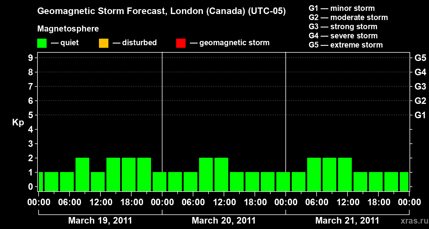 Geomagnetic storm forecast in London (Canada) for Mar 19, 2011