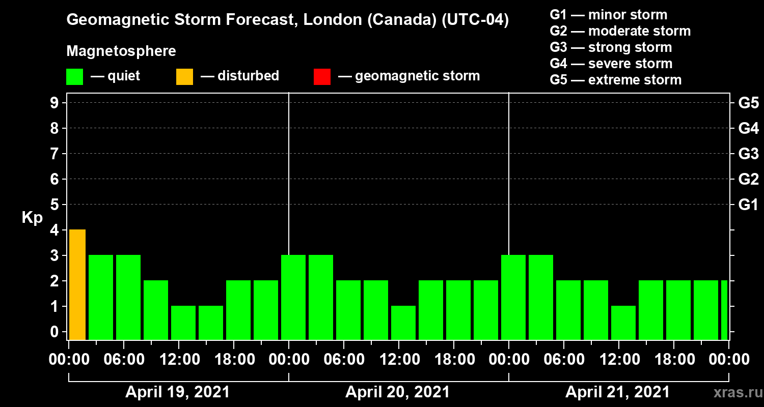 Geomagnetic activity forecast in London (Canada) — Apr 19, 2021