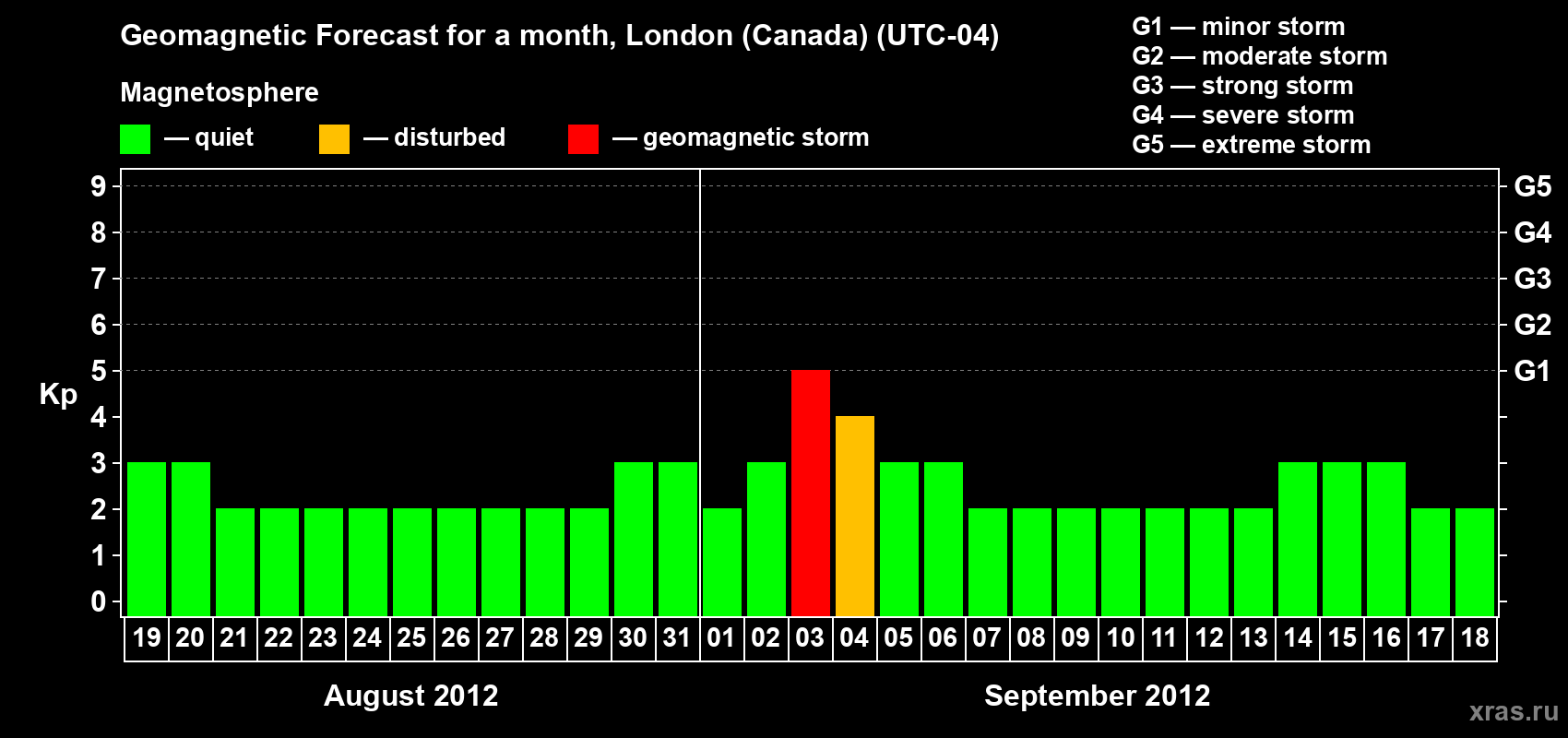 Geomagnetic storm forecast in London (Canada) for Aug 19, 2012