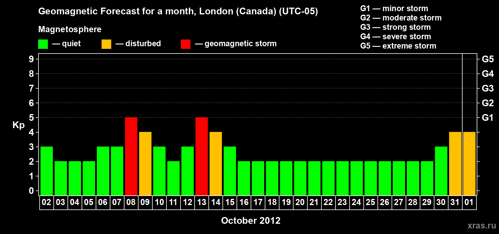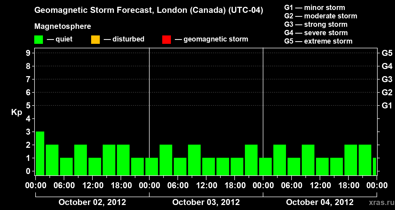 Geomagnetic storm forecast in London (Canada) for Oct 02, 2012