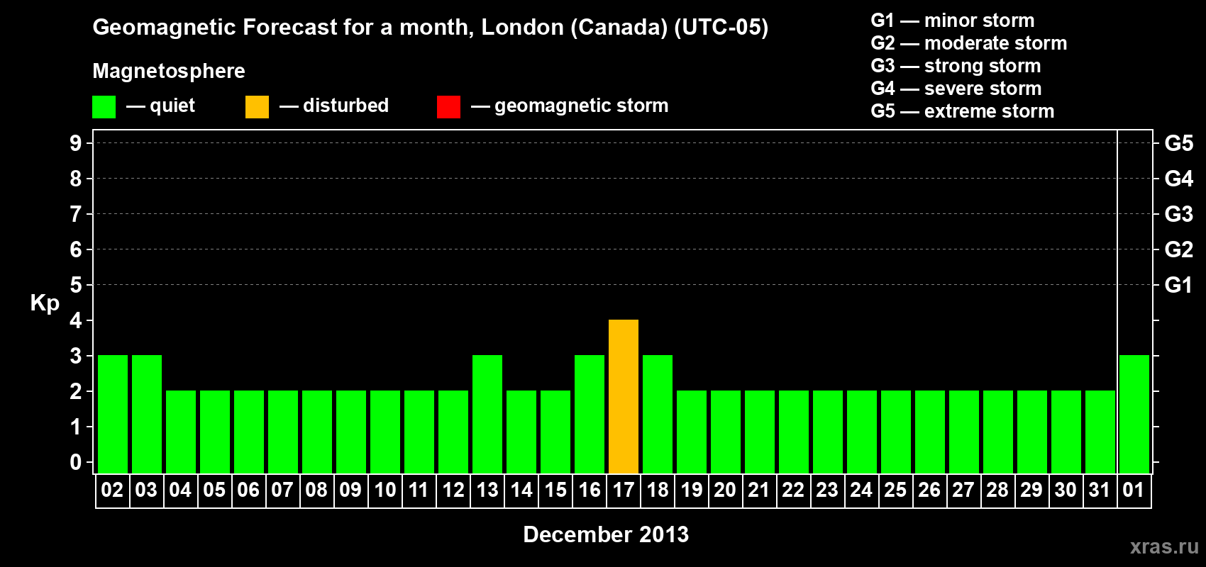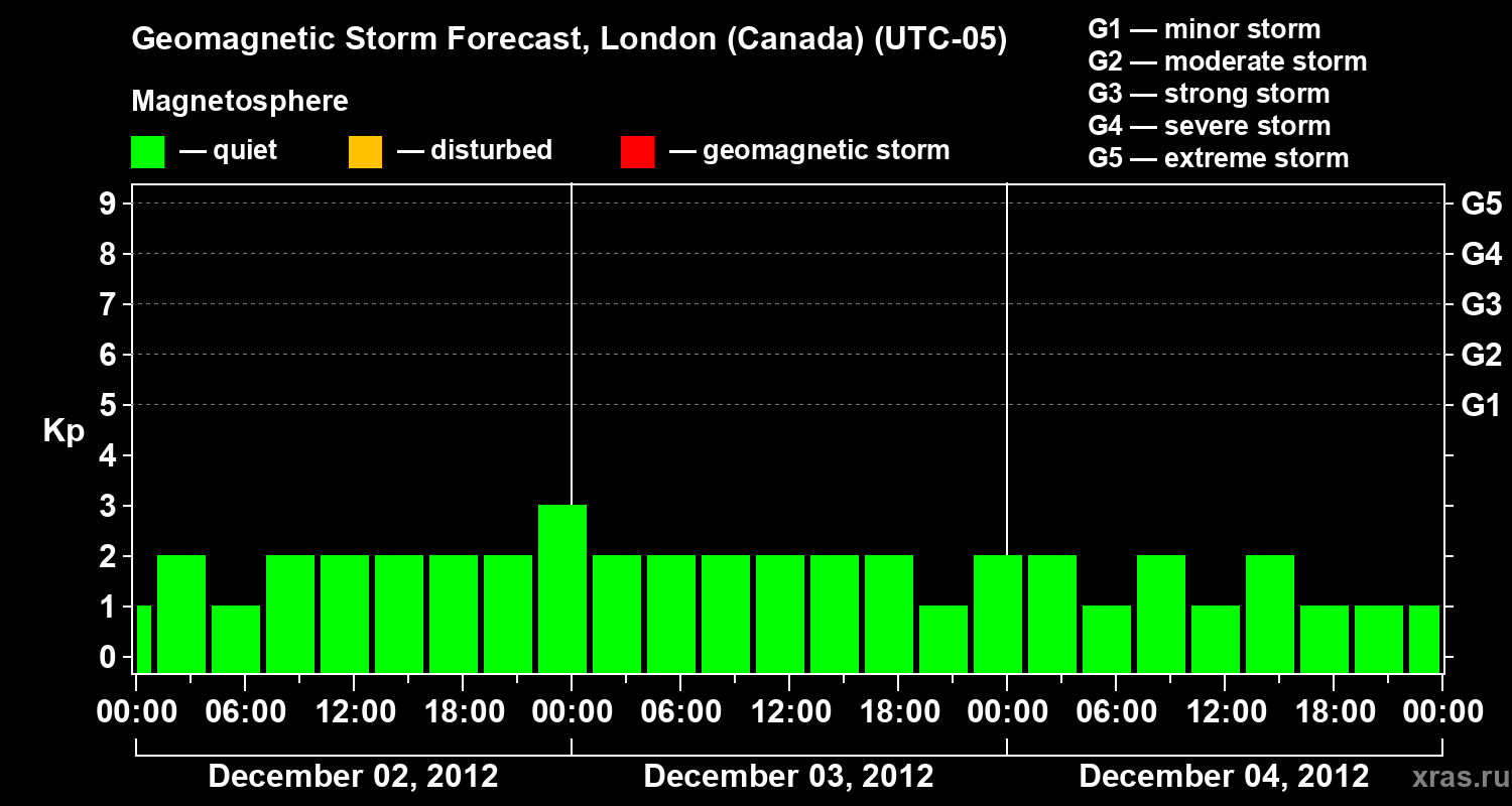 Geomagnetic storm forecast in London (Canada) for Dec 02, 2012