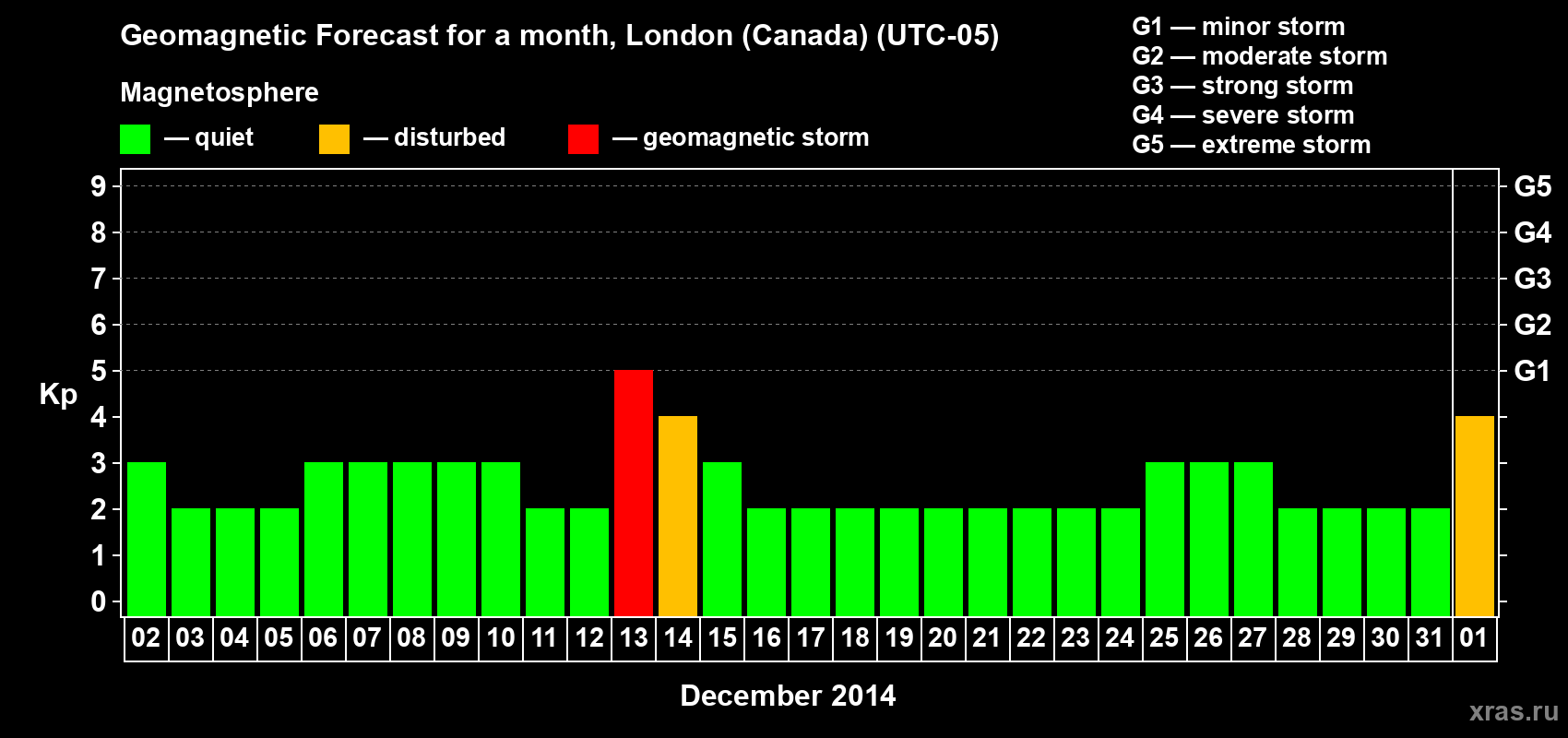Geomagnetic storm forecast in London (Canada) for Dec 02, 2013