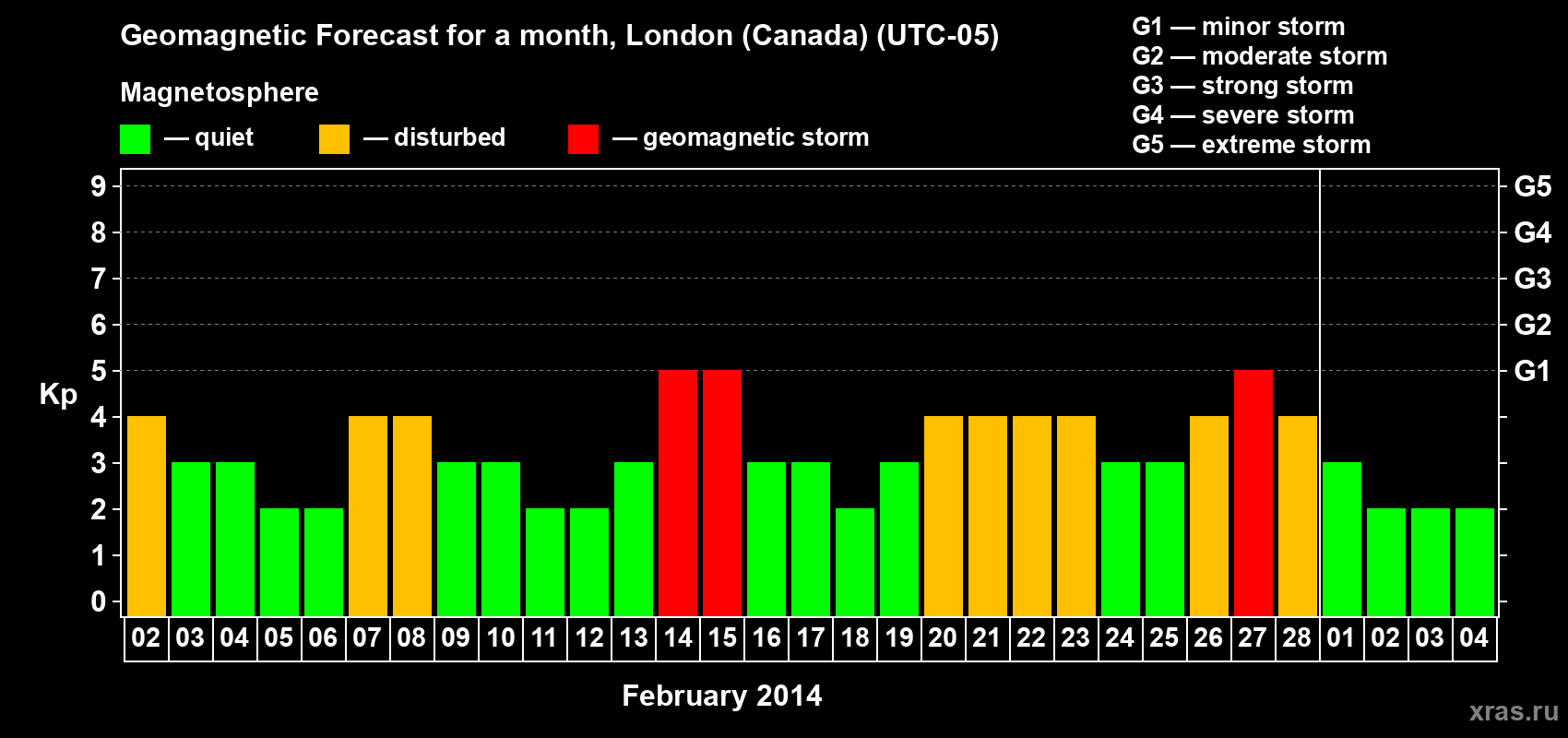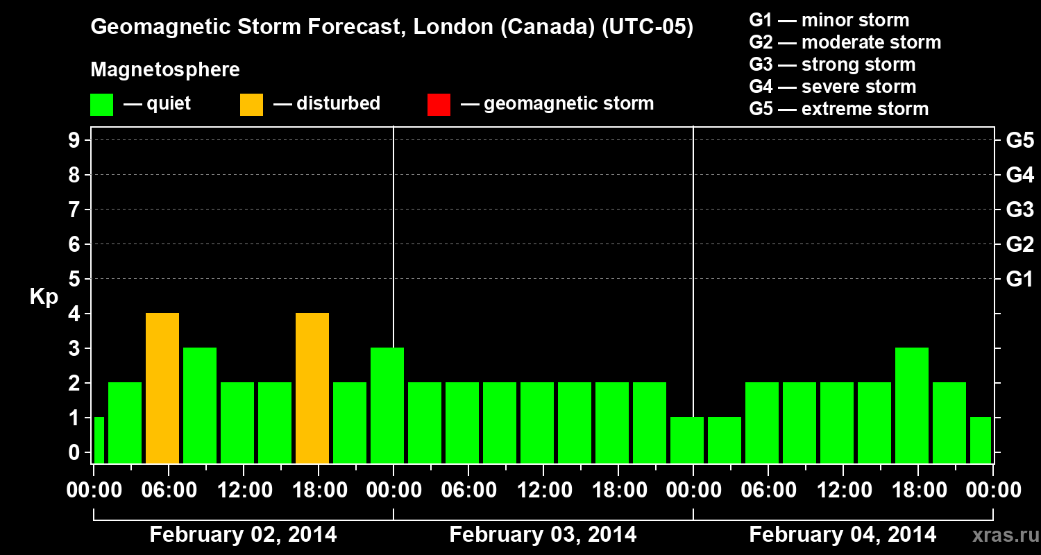 Geomagnetic storm forecast in London (Canada) for Feb 02, 2014