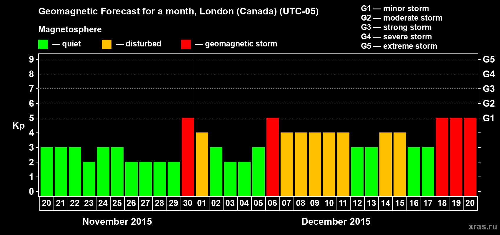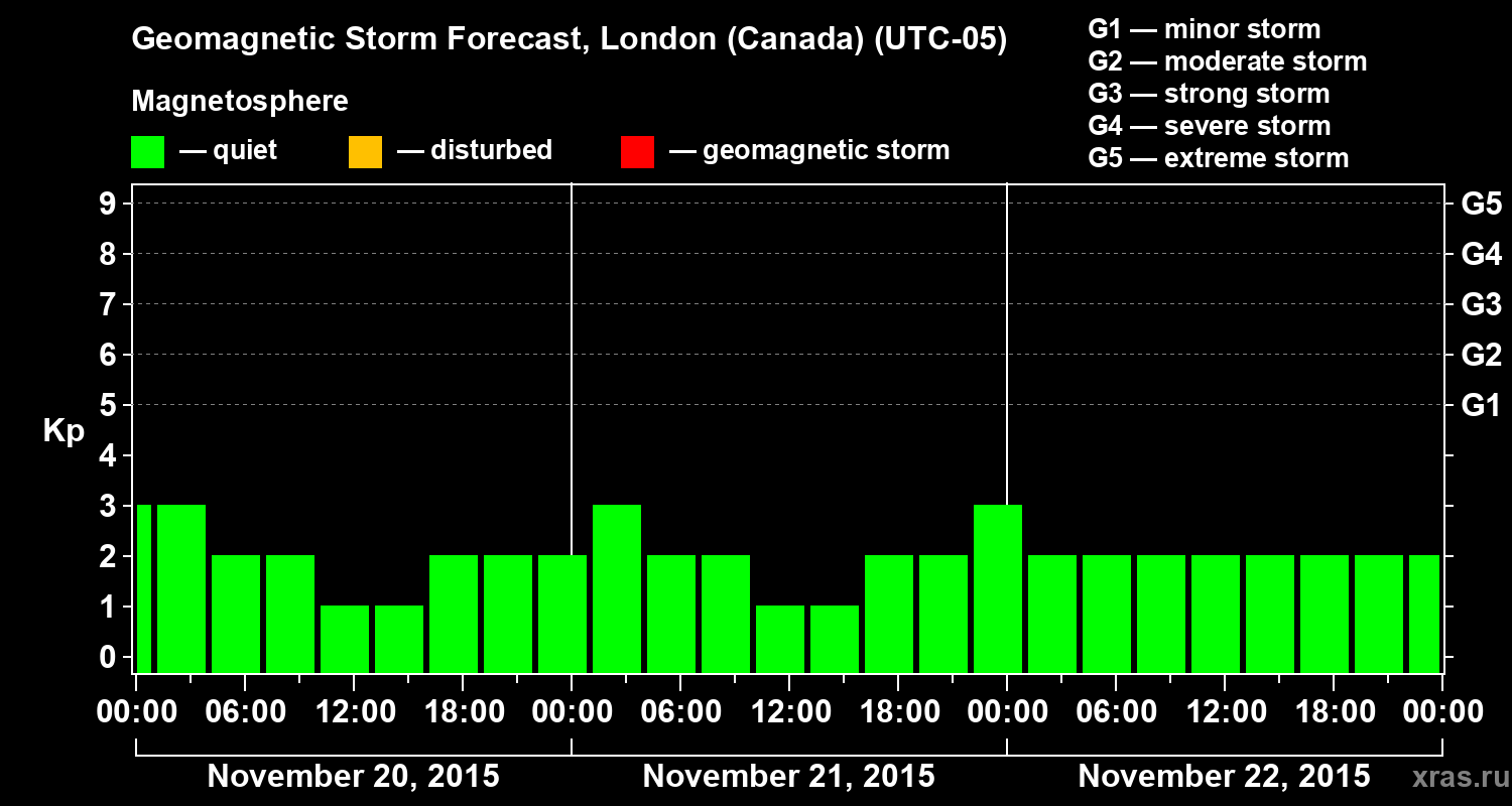 Geomagnetic storm forecast in London (Canada) for Nov 20, 2015
