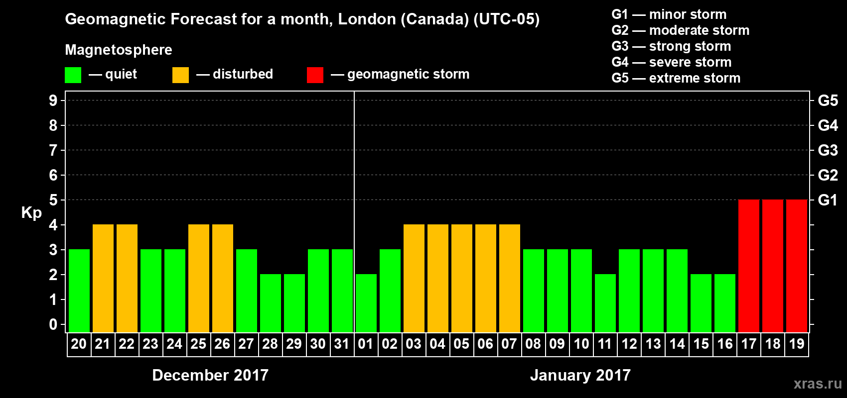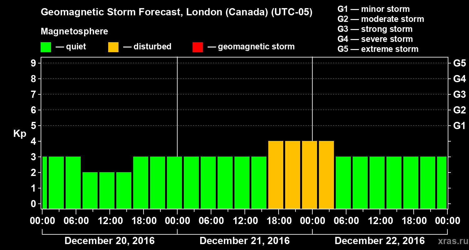 Geomagnetic storm forecast in London (Canada) for Dec 20, 2016