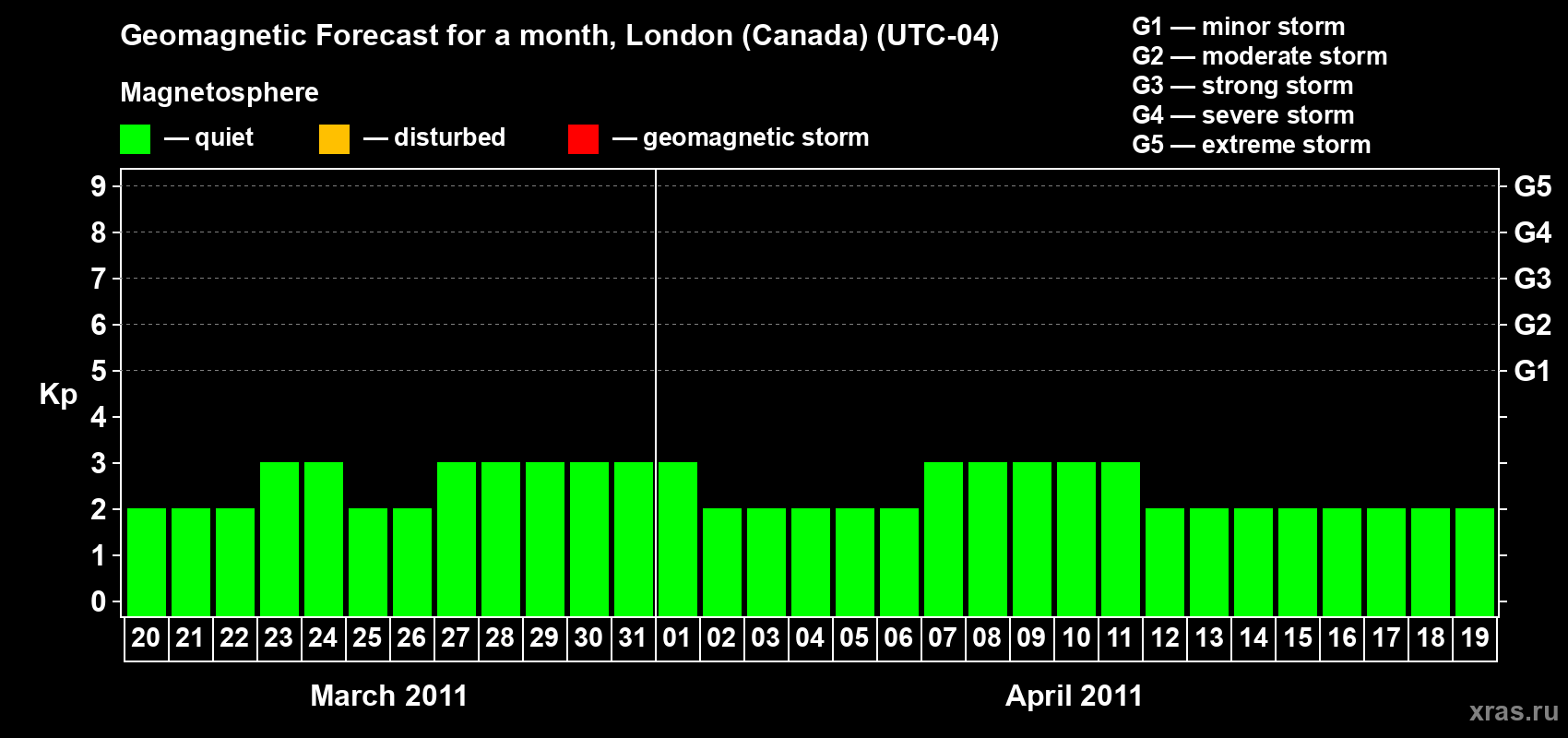 Geomagnetic storm forecast in London (Canada) for Mar 20, 2011