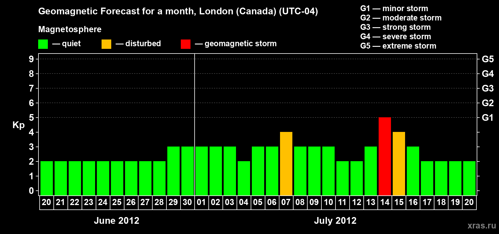 Geomagnetic storm forecast in London (Canada) for Jun 20, 2012