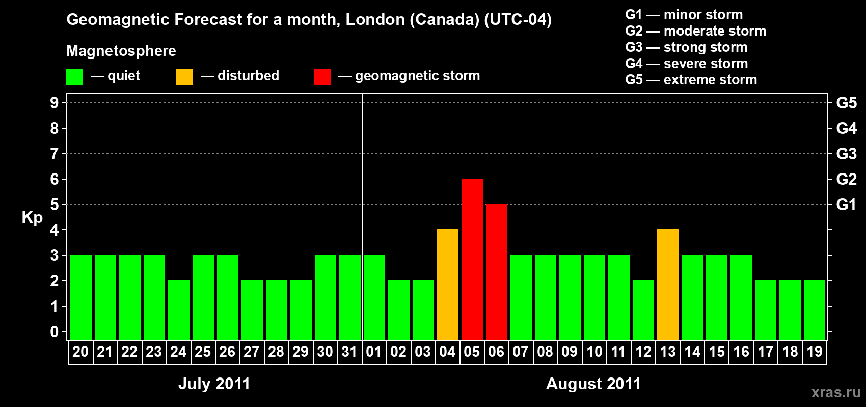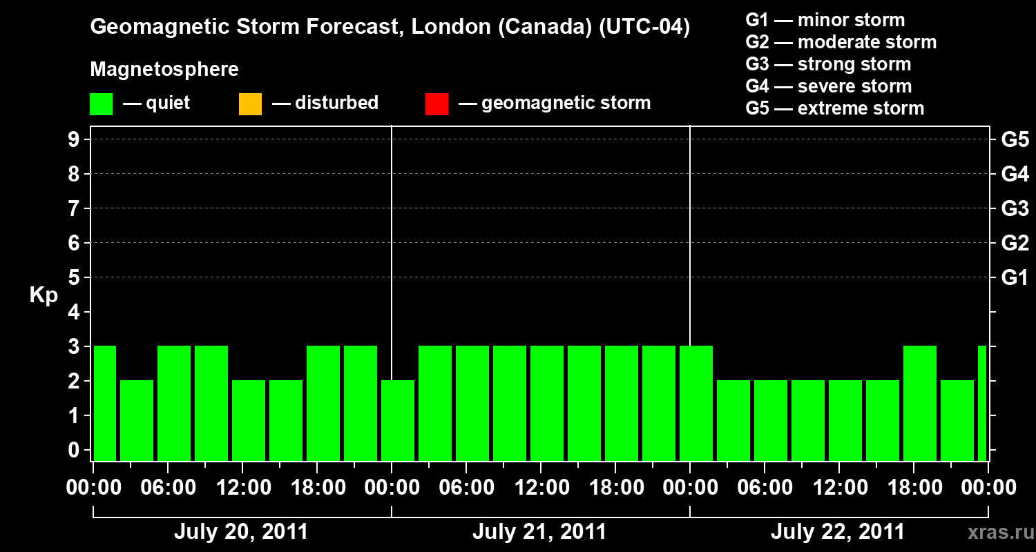 Geomagnetic storm forecast in London (Canada) for Jul 20, 2011