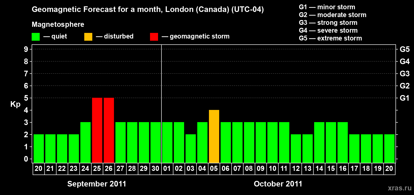 Geomagnetic storm forecast in London (Canada) for Sep 20, 2011