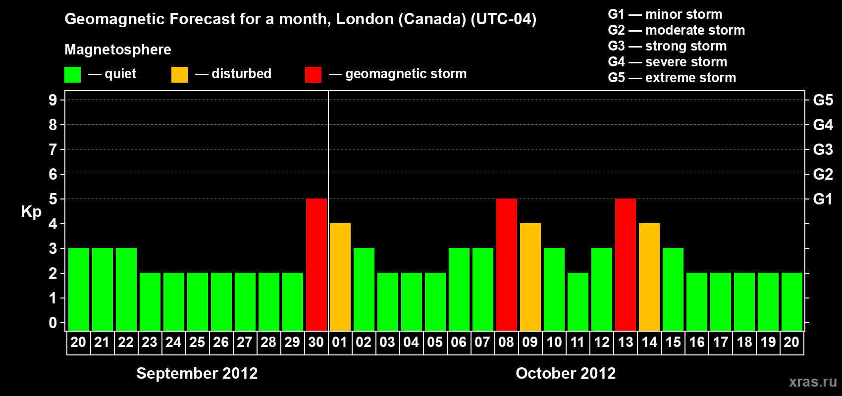 Geomagnetic storm forecast in London (Canada) for Sep 20, 2012