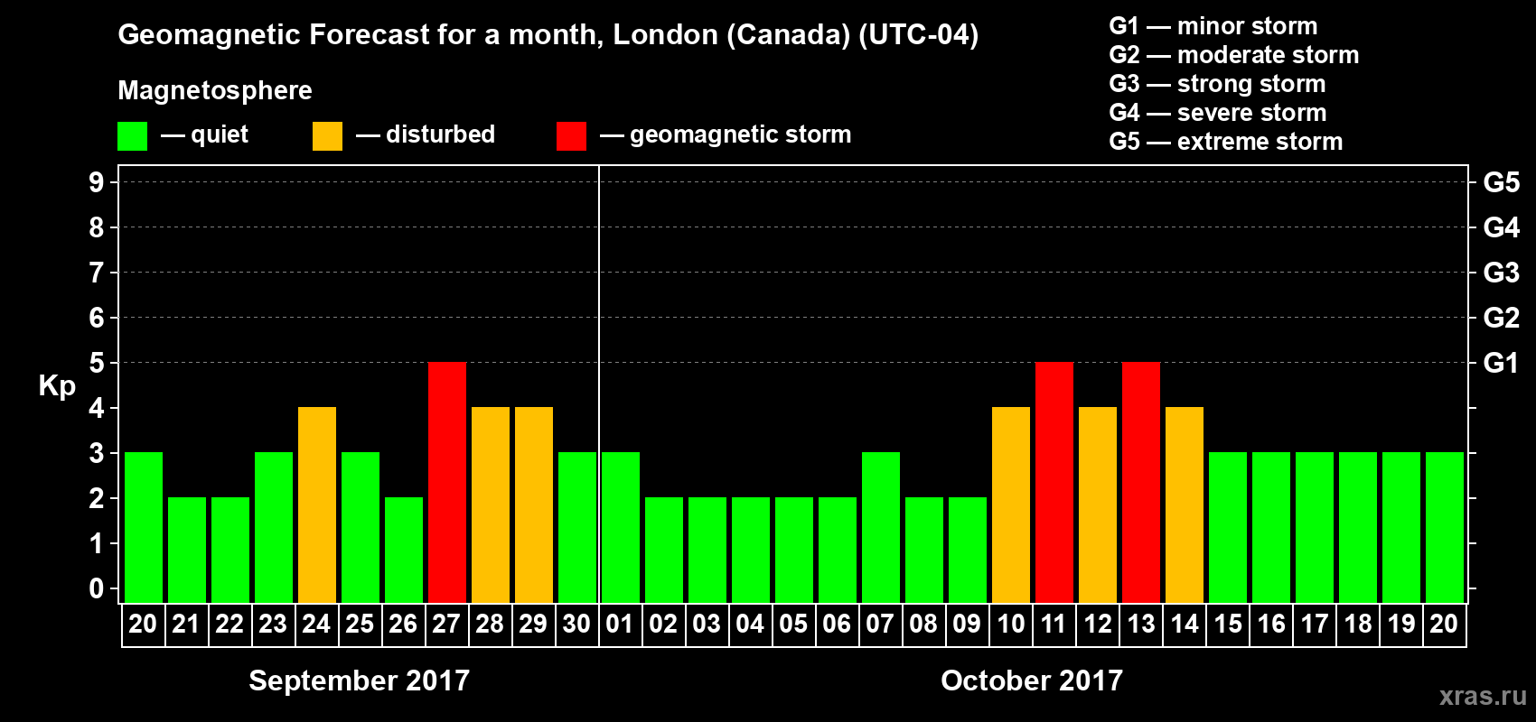 Geomagnetic storm forecast in London (Canada) for Sep 20, 2017