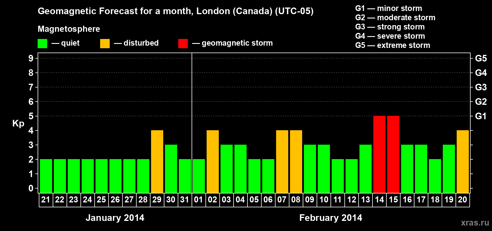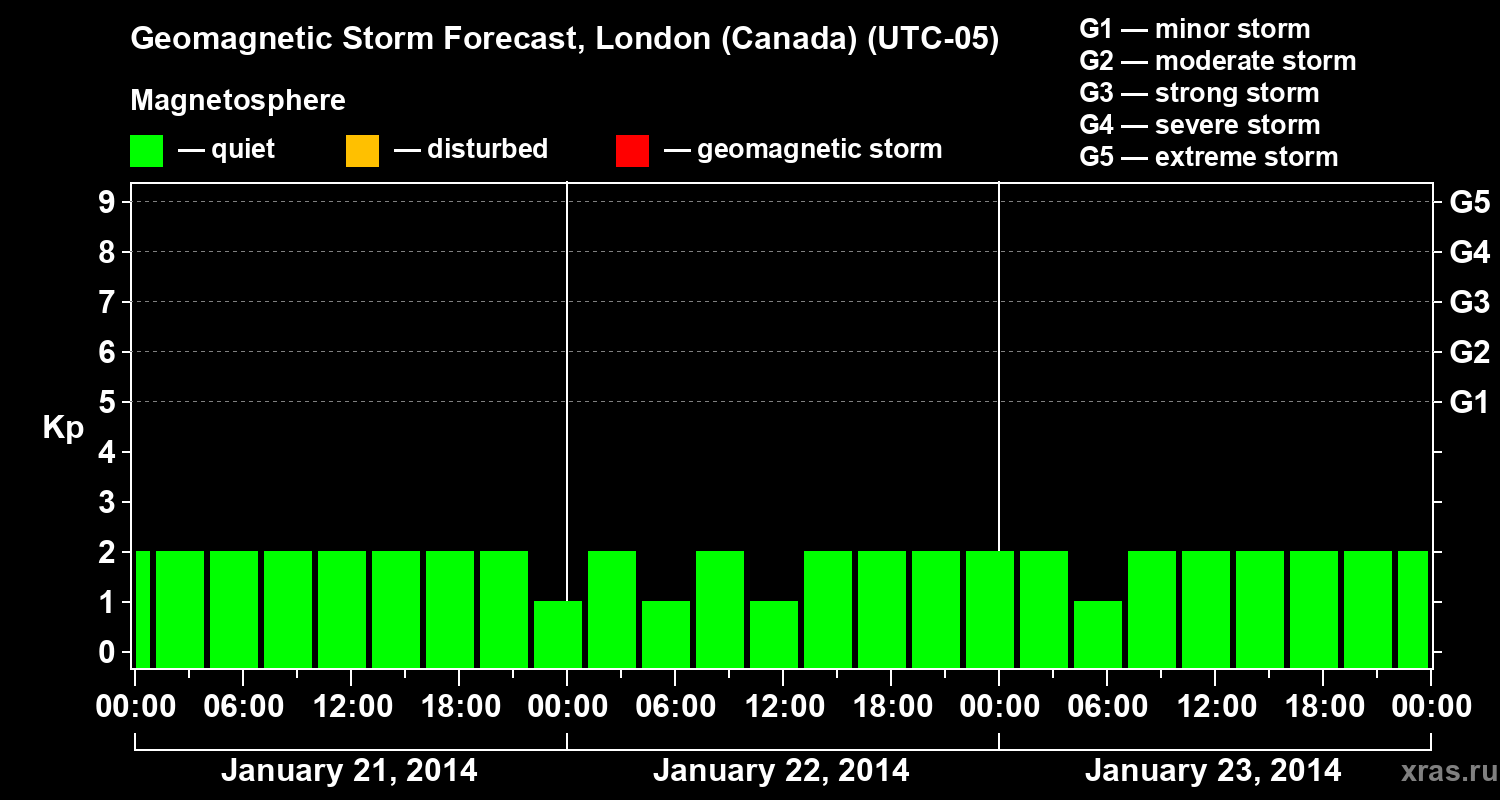 Geomagnetic storm forecast in London (Canada) for Jan 21, 2014