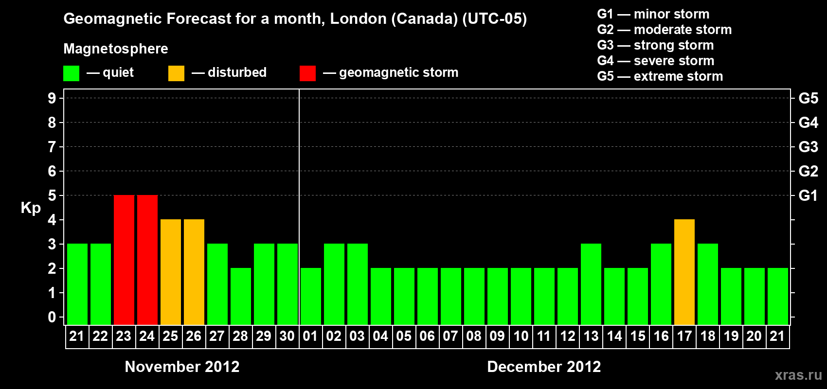 Geomagnetic storm forecast in London (Canada) for Nov 21, 2012