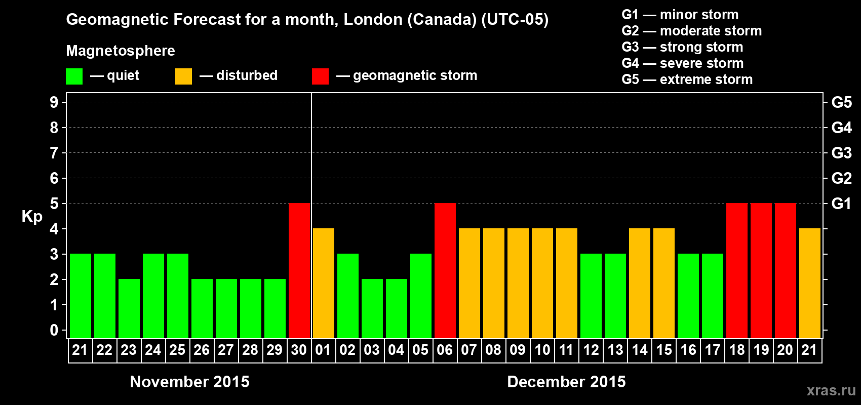 Geomagnetic storm forecast in London (Canada) for Nov 21, 2015