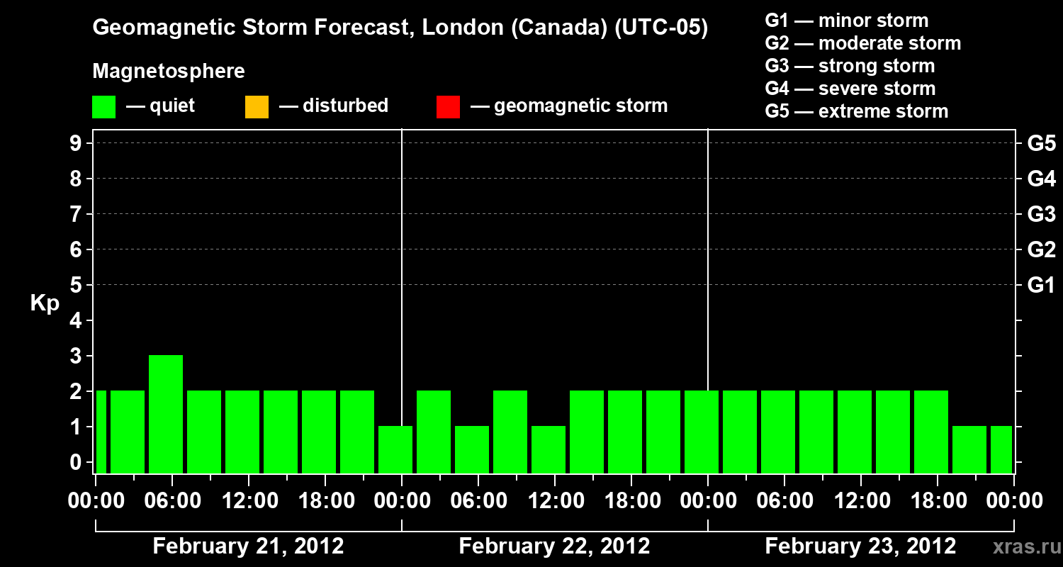 Geomagnetic storm forecast in London (Canada) for Feb 21, 2012