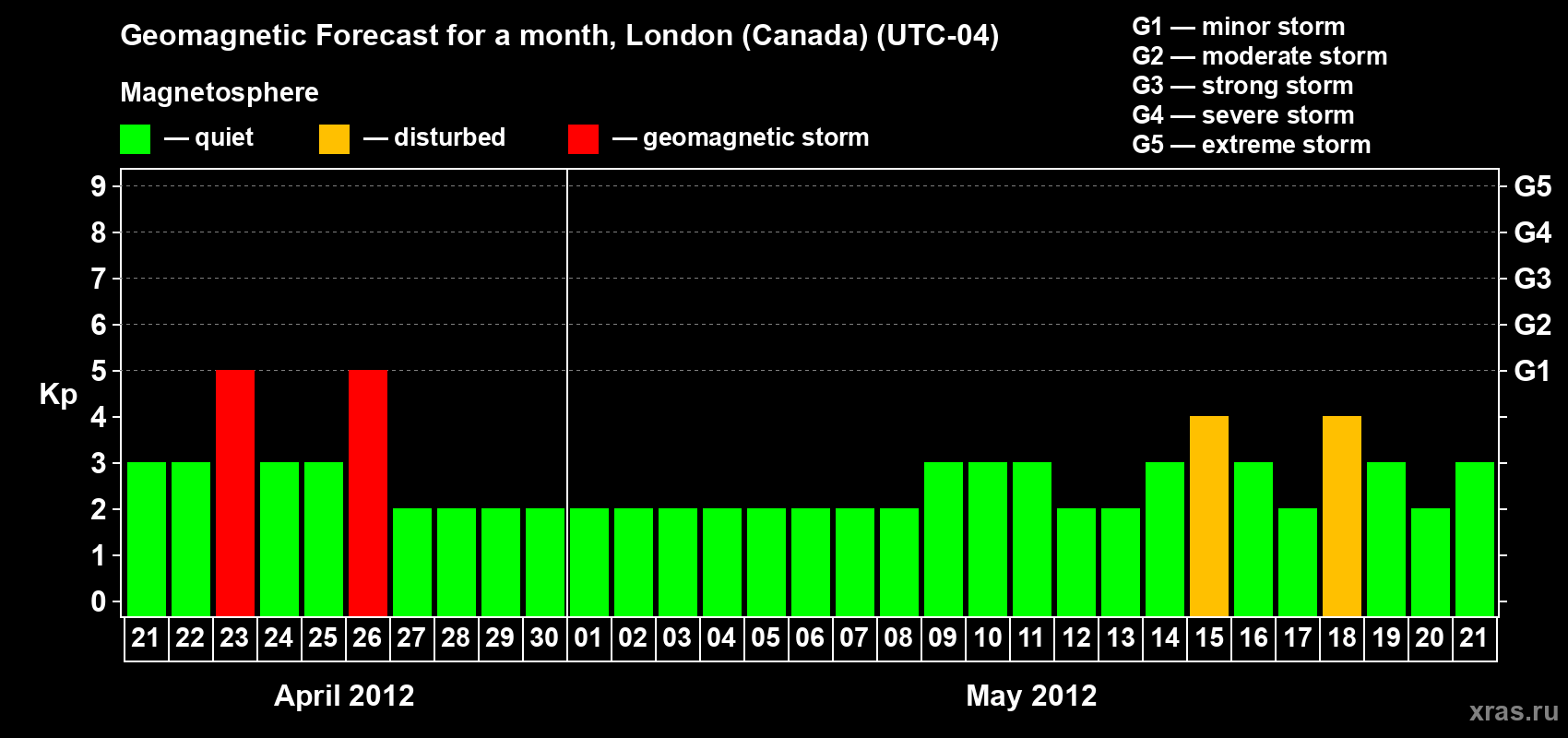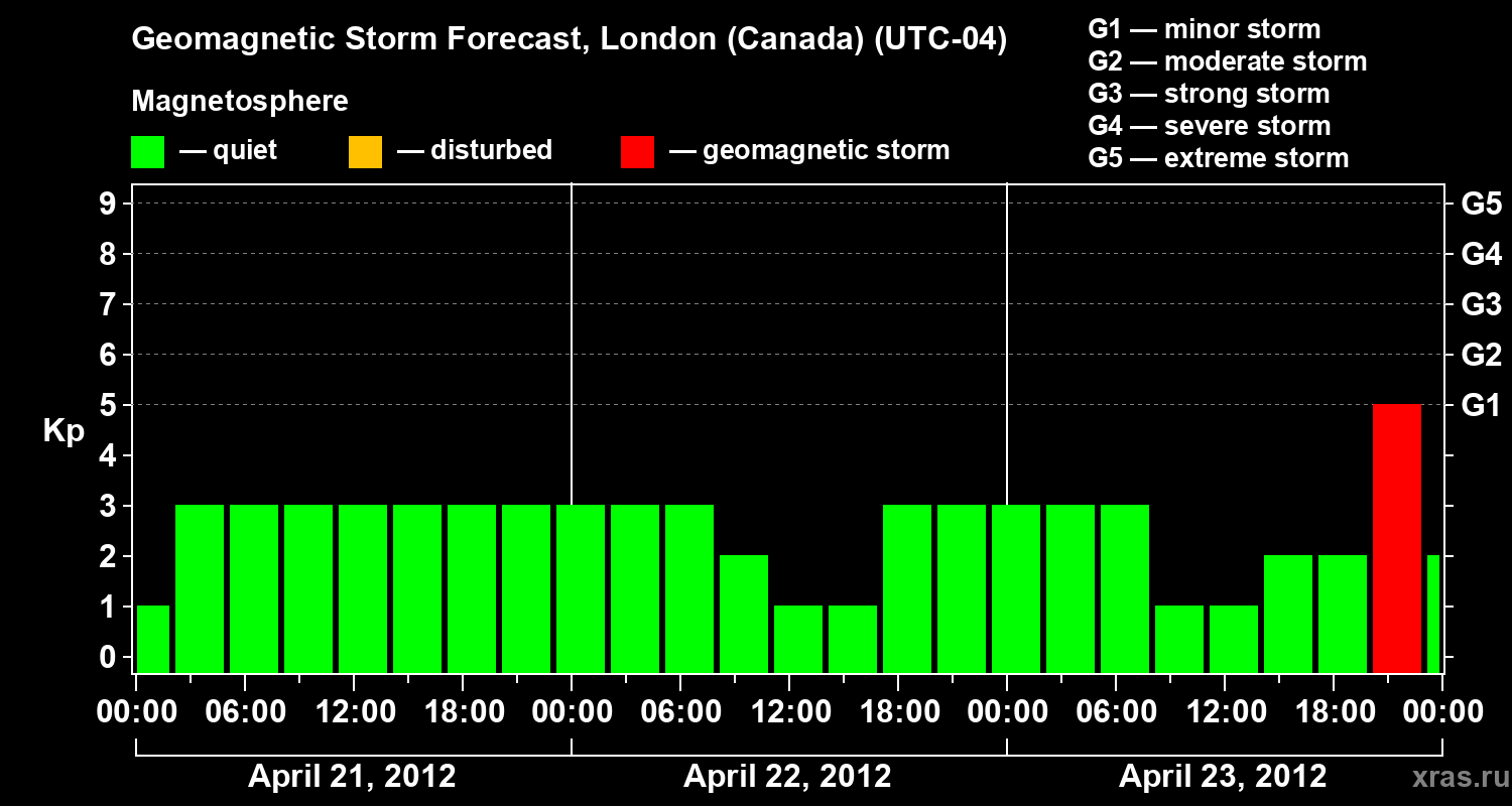 Geomagnetic storm forecast in London (Canada) for Apr 21, 2012