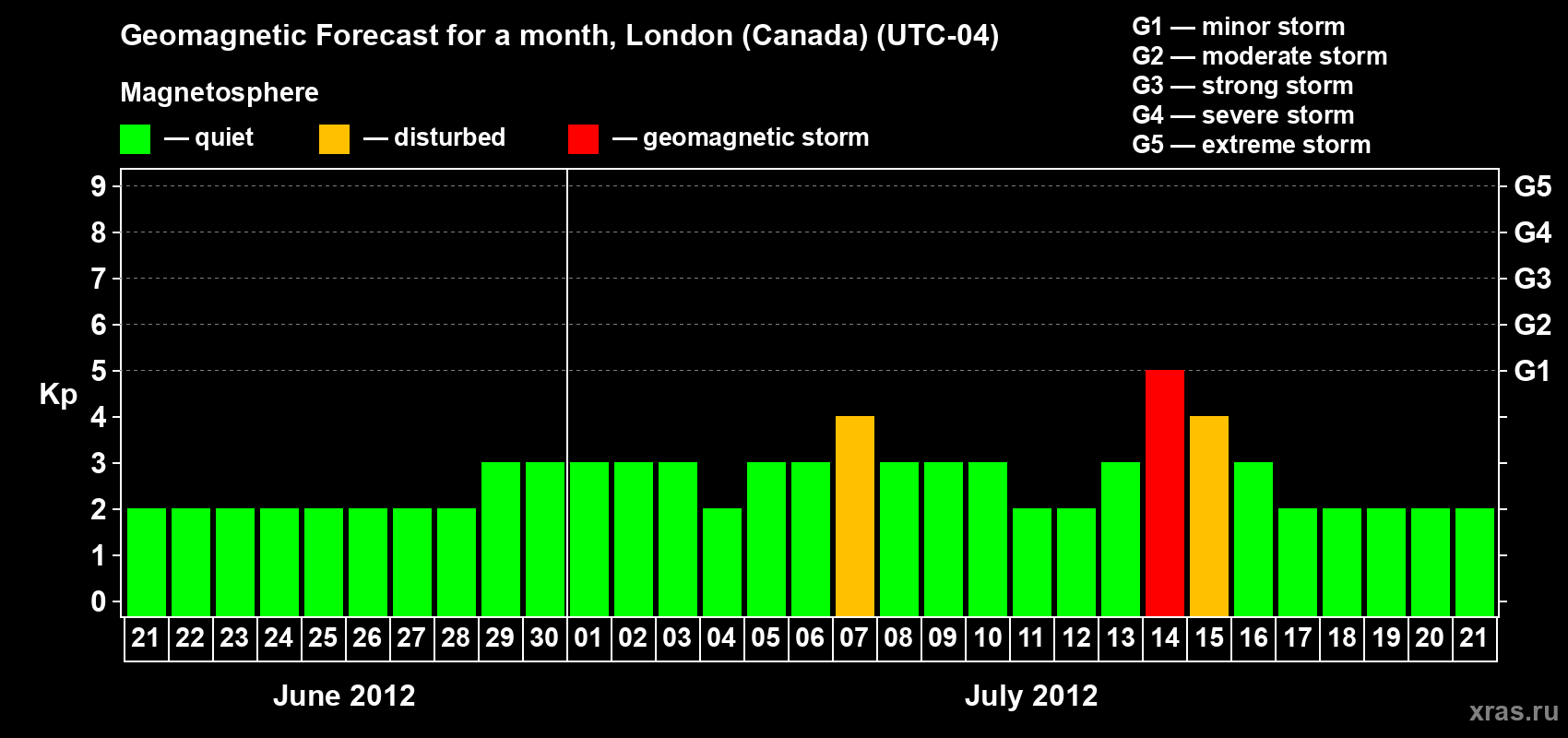 Geomagnetic storm forecast in London (Canada) for Jun 21, 2012