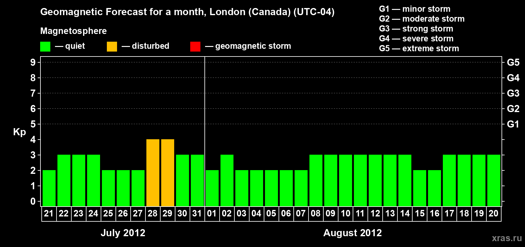 Geomagnetic storm forecast in London (Canada) for Jul 21, 2012