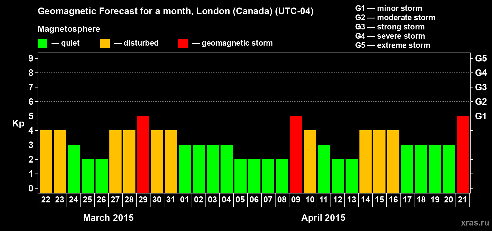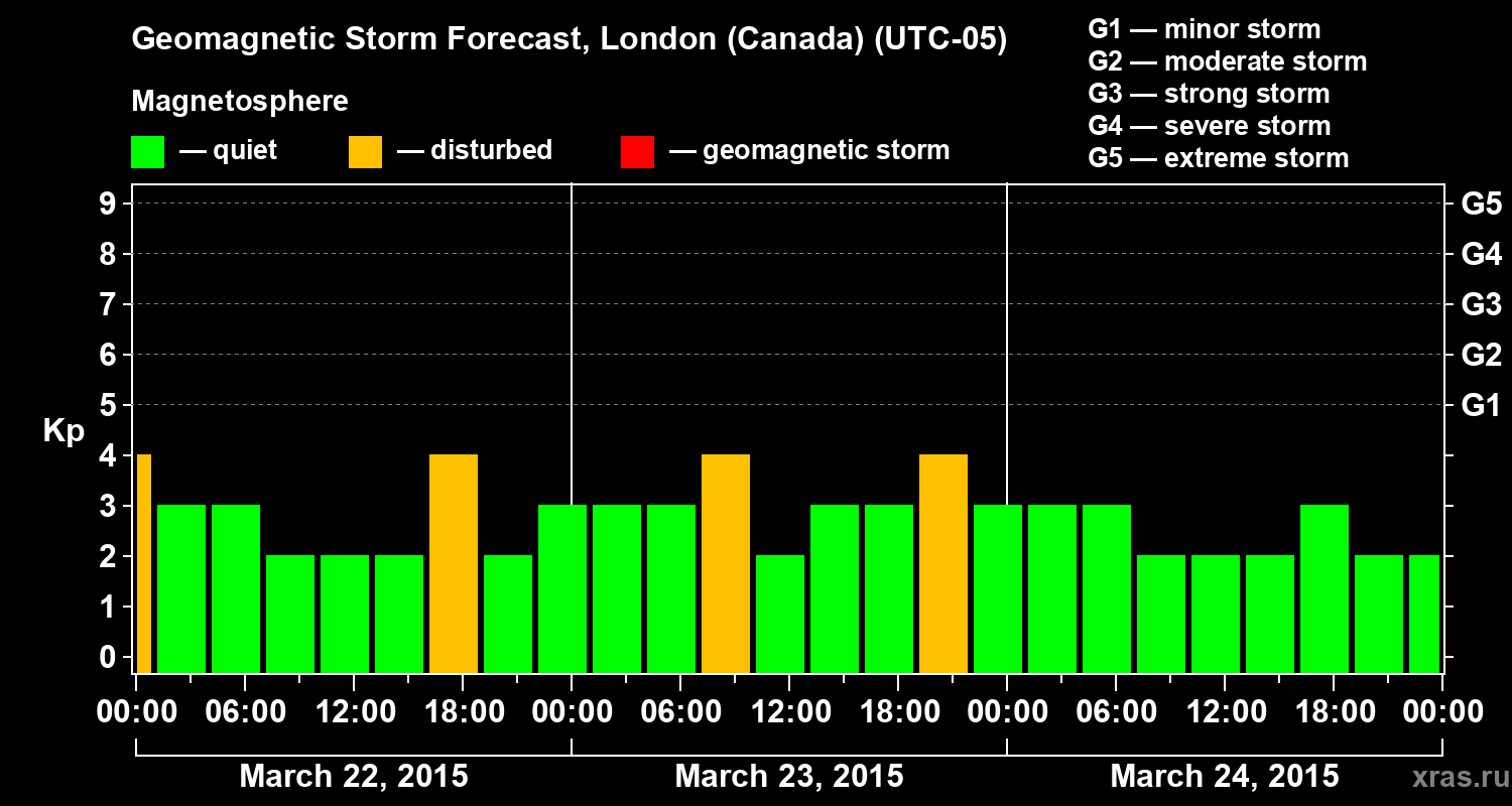 Geomagnetic storm forecast in London (Canada) for Mar 22, 2015