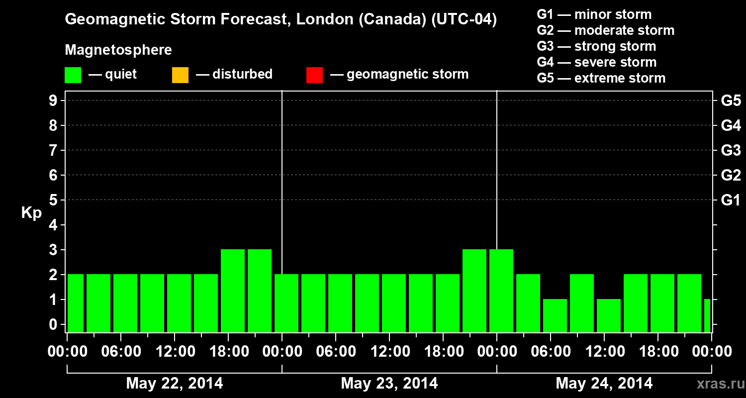 Geomagnetic storm forecast in London (Canada) for May 22, 2014