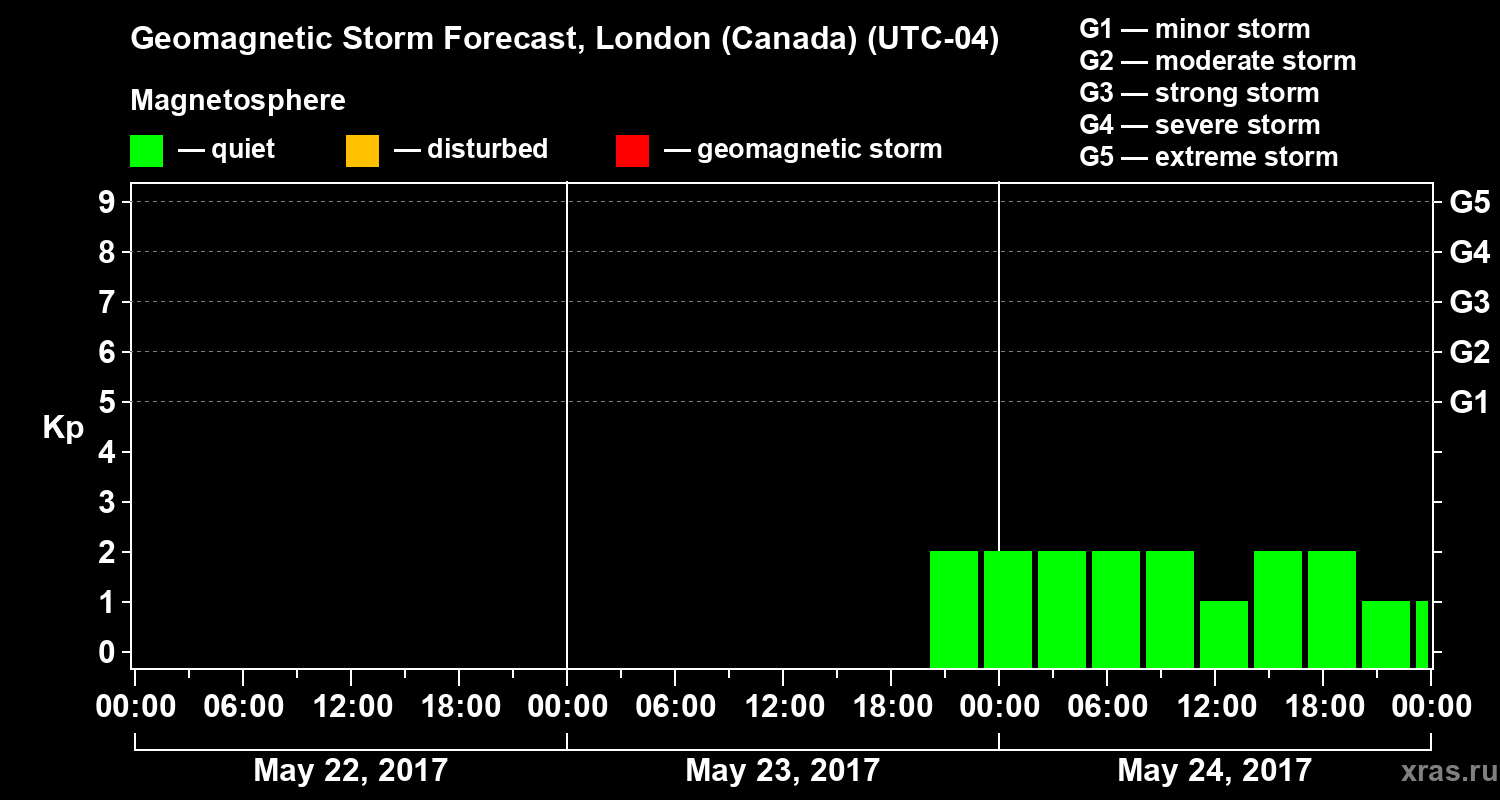 Geomagnetic storm forecast in London (Canada) for May 22, 2017