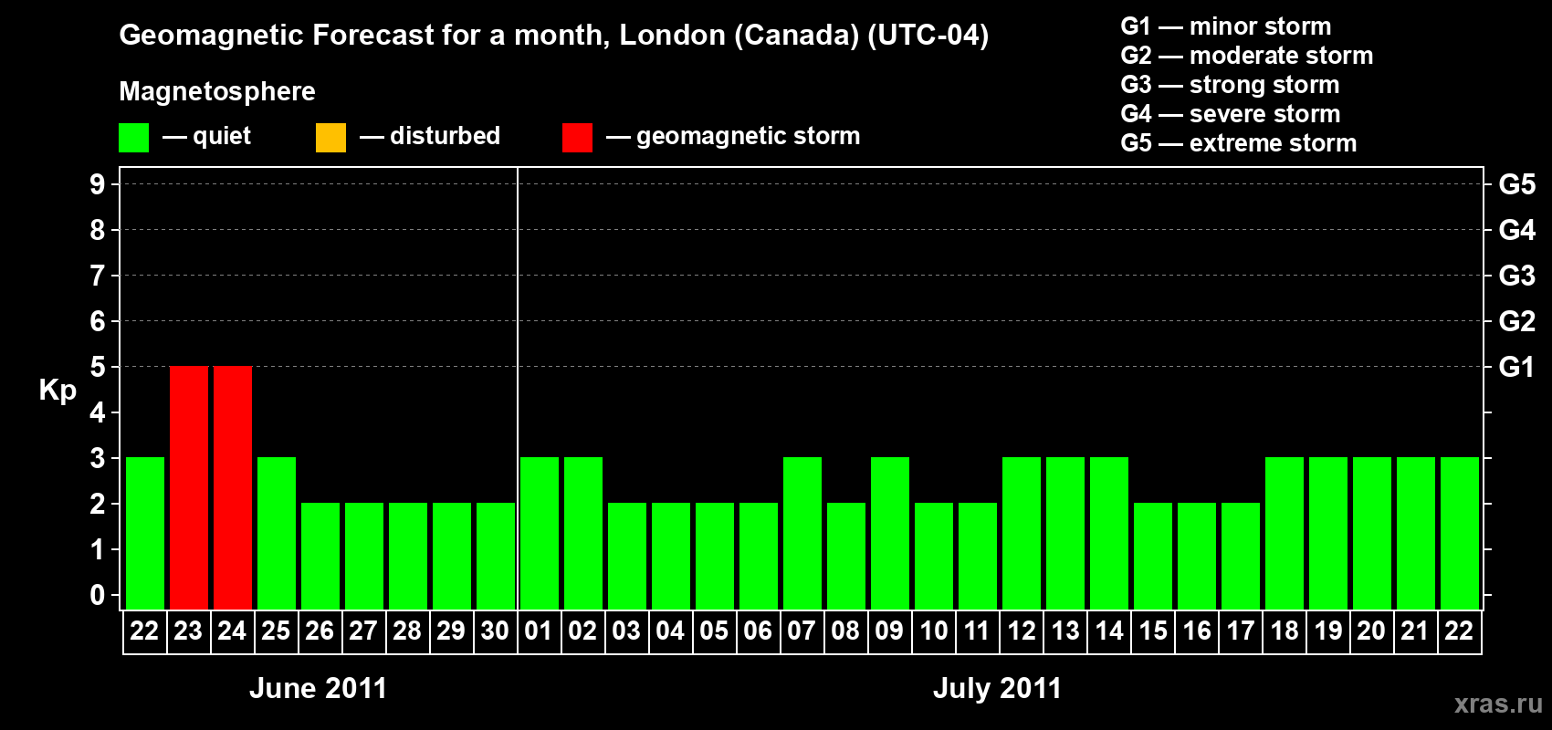 Geomagnetic storm forecast in London (Canada) for Jun 22, 2011