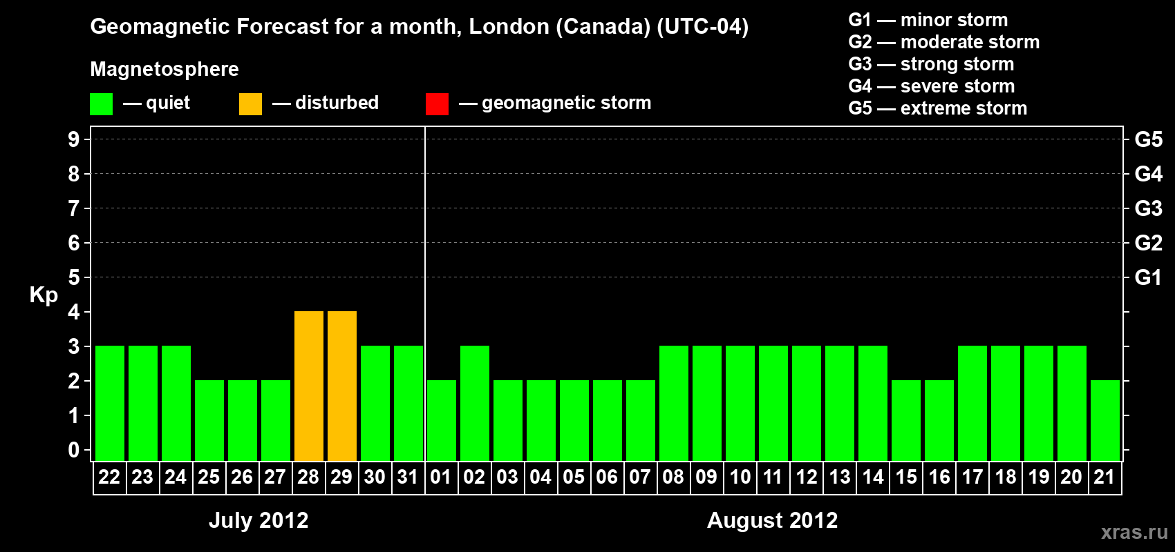 Geomagnetic storm forecast in London (Canada) for Jul 22, 2012