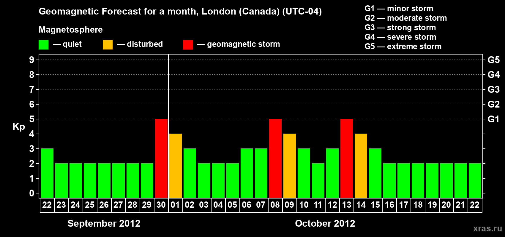 Geomagnetic storm forecast in London (Canada) for Sep 22, 2012