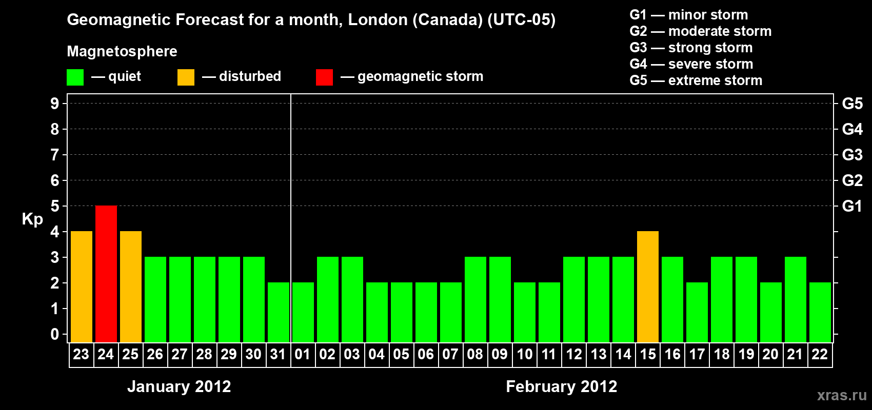 Geomagnetic storm forecast in London (Canada) for Jan 23, 2012