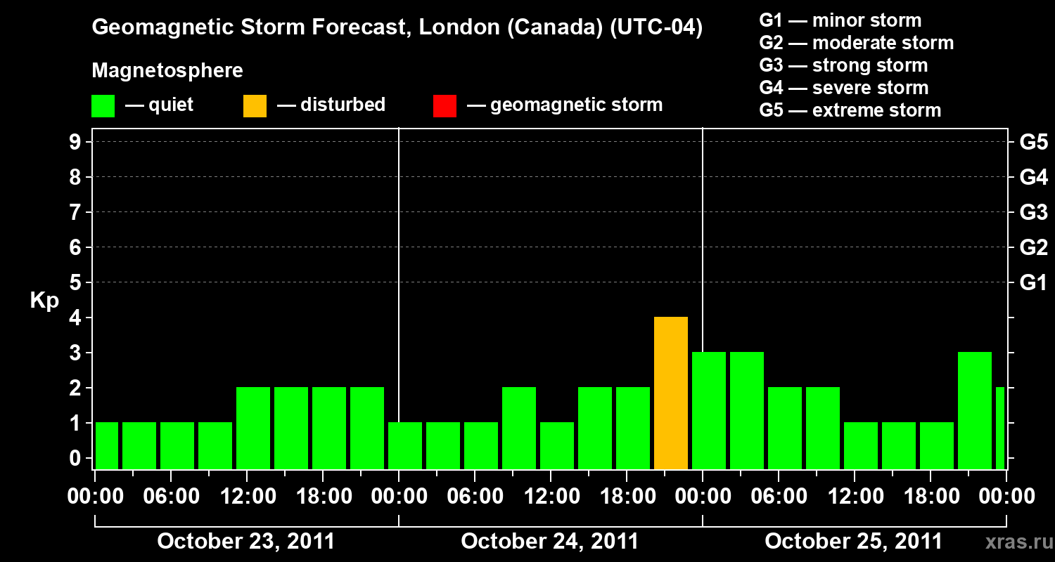 Geomagnetic activity forecast in London (Canada) — Oct 23, 2011