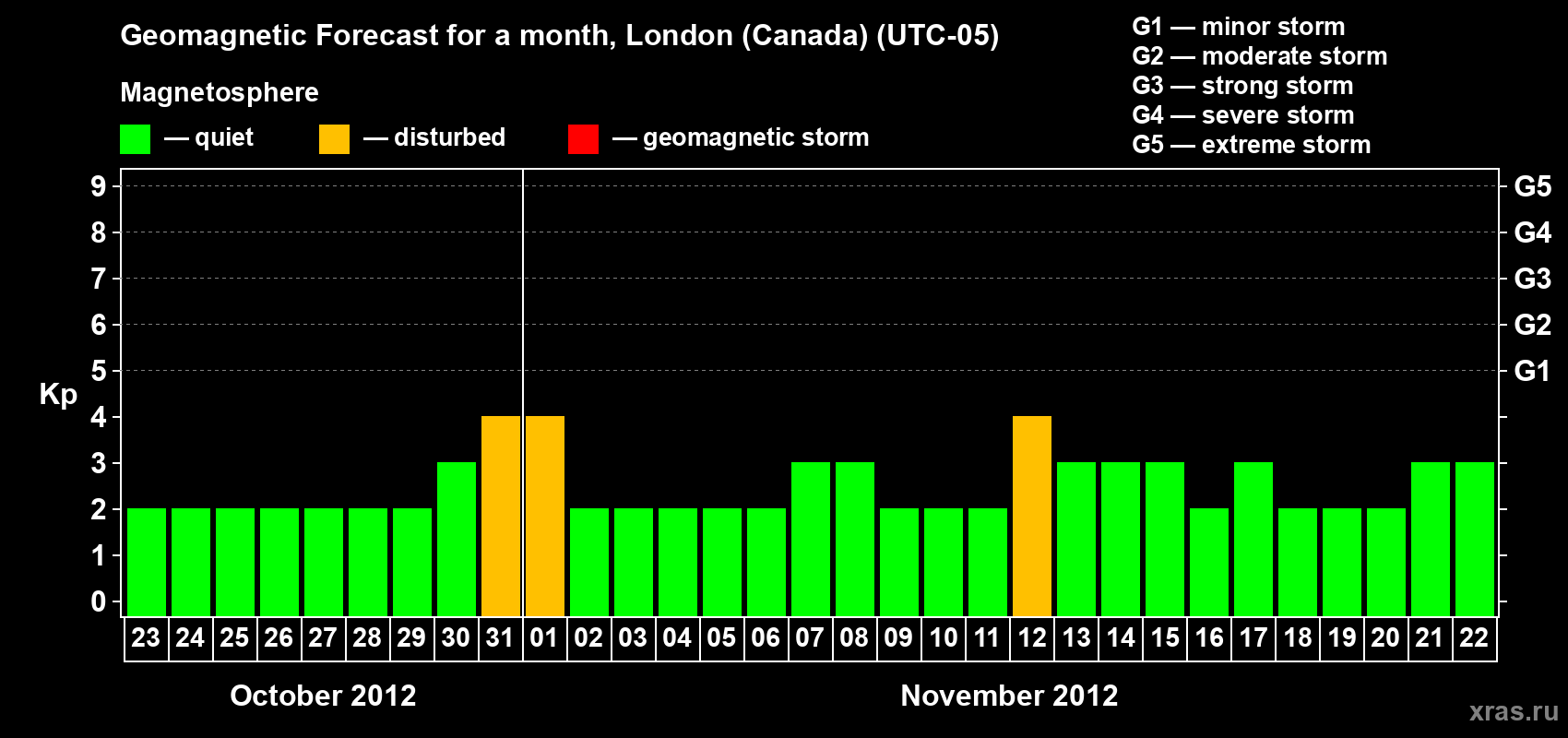 Geomagnetic storm forecast in London (Canada) for Oct 23, 2012