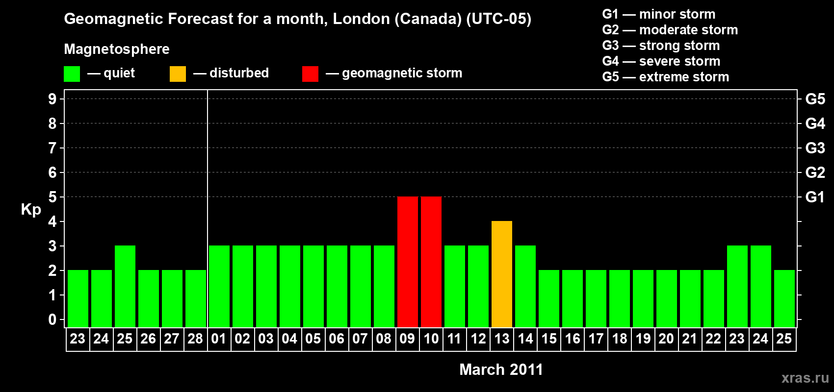 Geomagnetic storm forecast in London (Canada) for Feb 23, 2011
