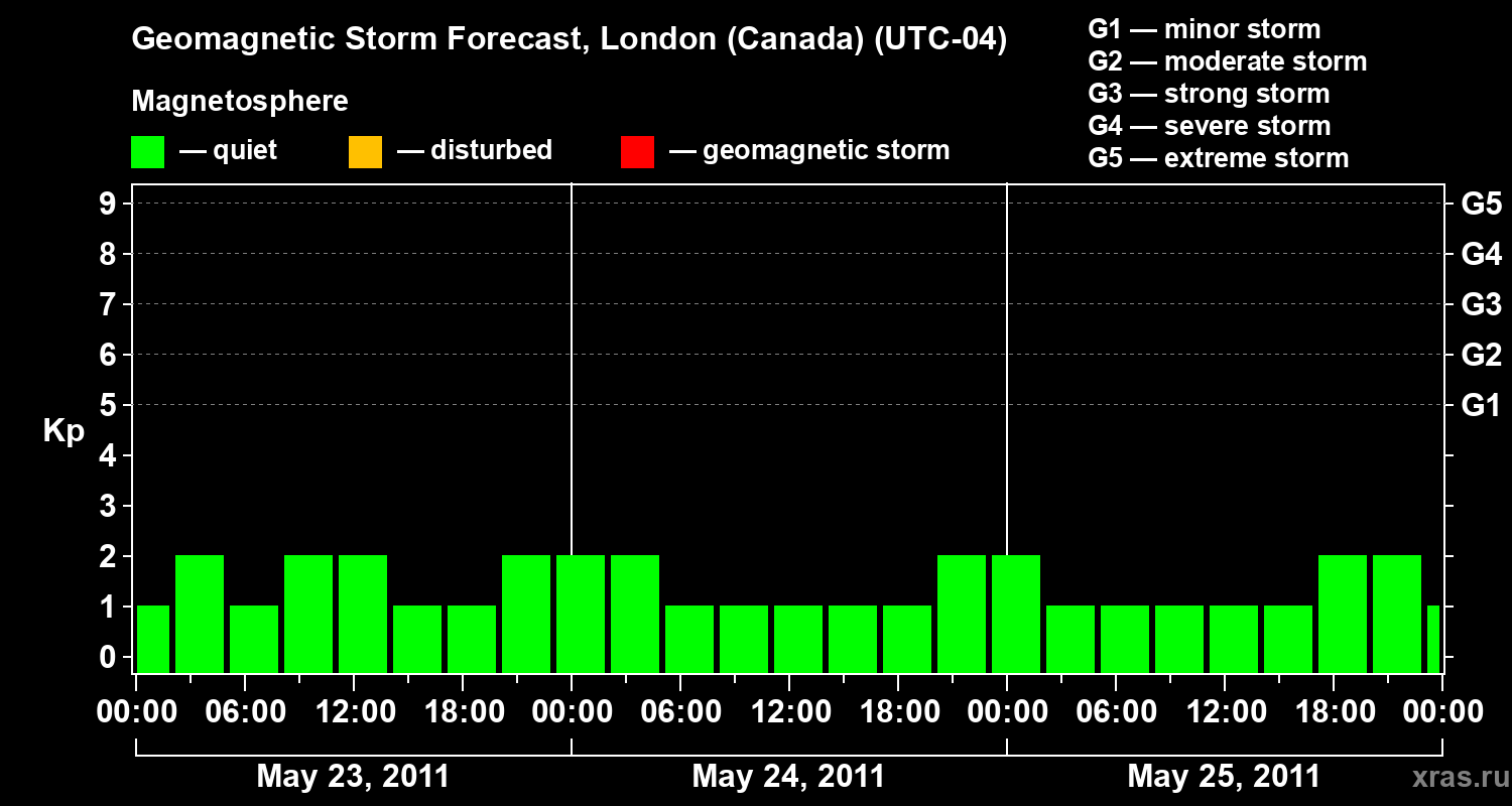Geomagnetic storm forecast in London (Canada) for May 23, 2011