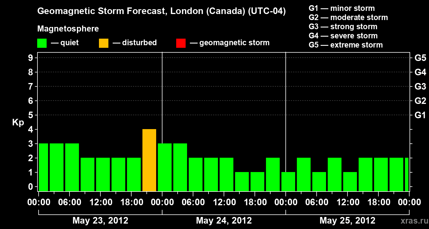 Geomagnetic storm forecast in London (Canada) for May 23, 2012