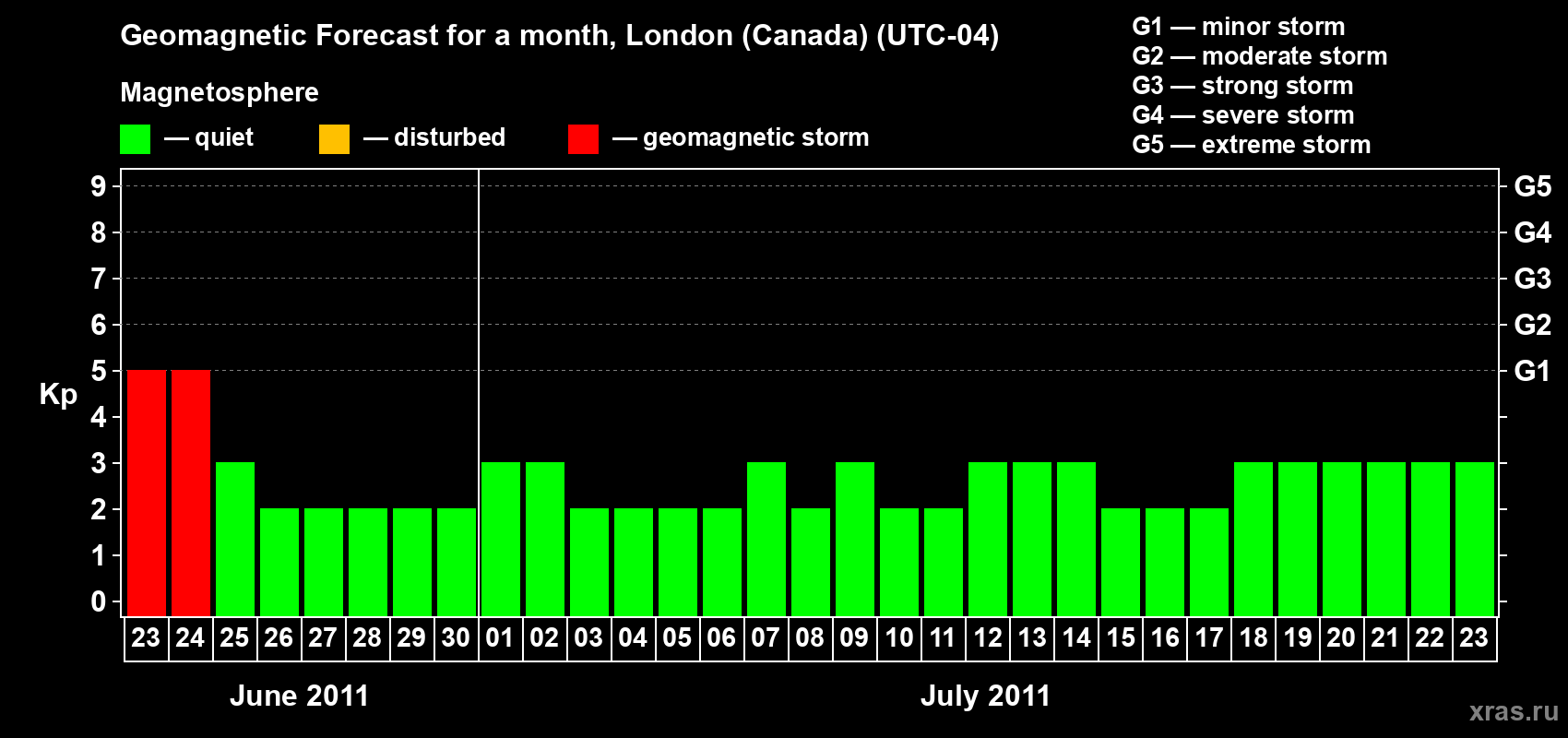 Geomagnetic storm forecast in London (Canada) for Jun 23, 2011