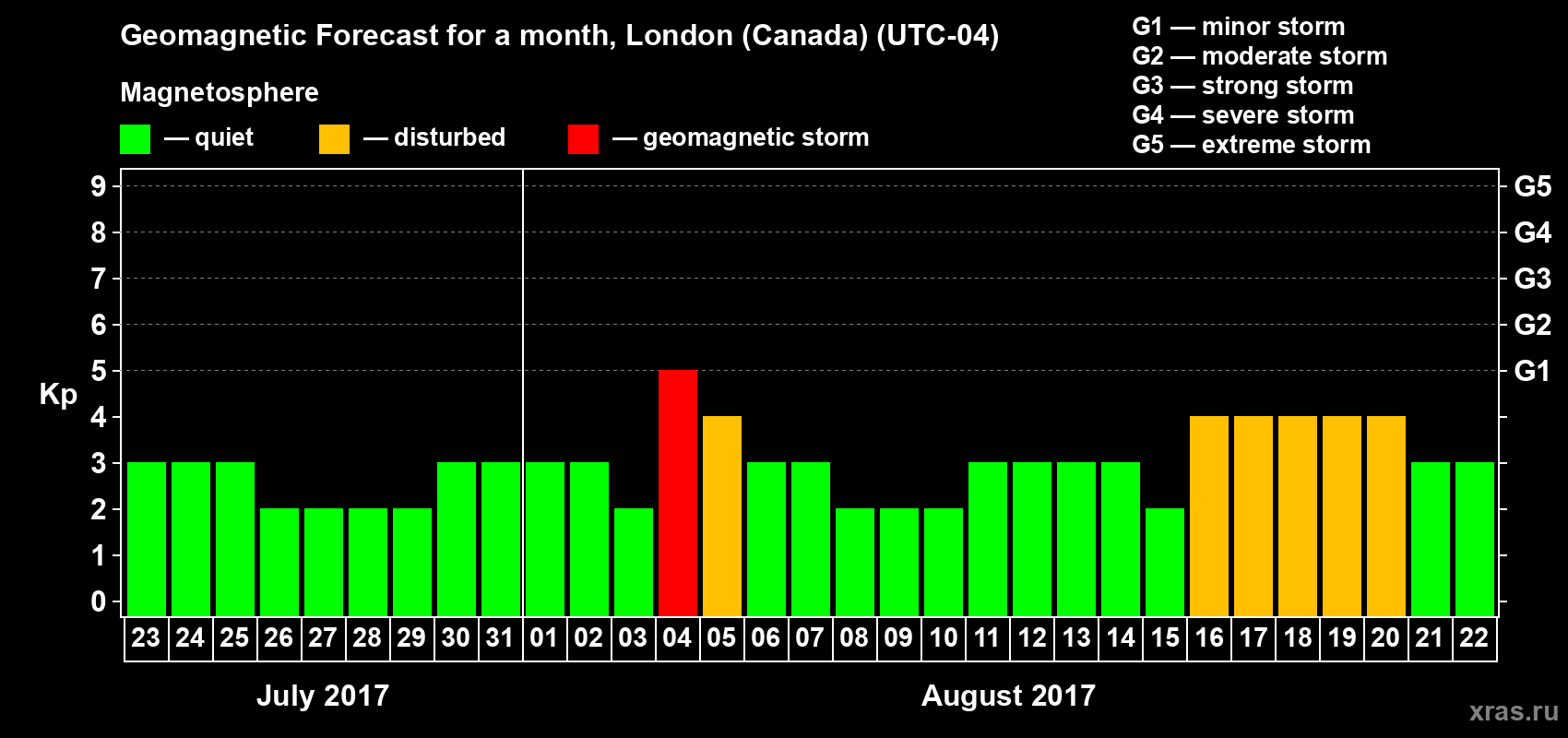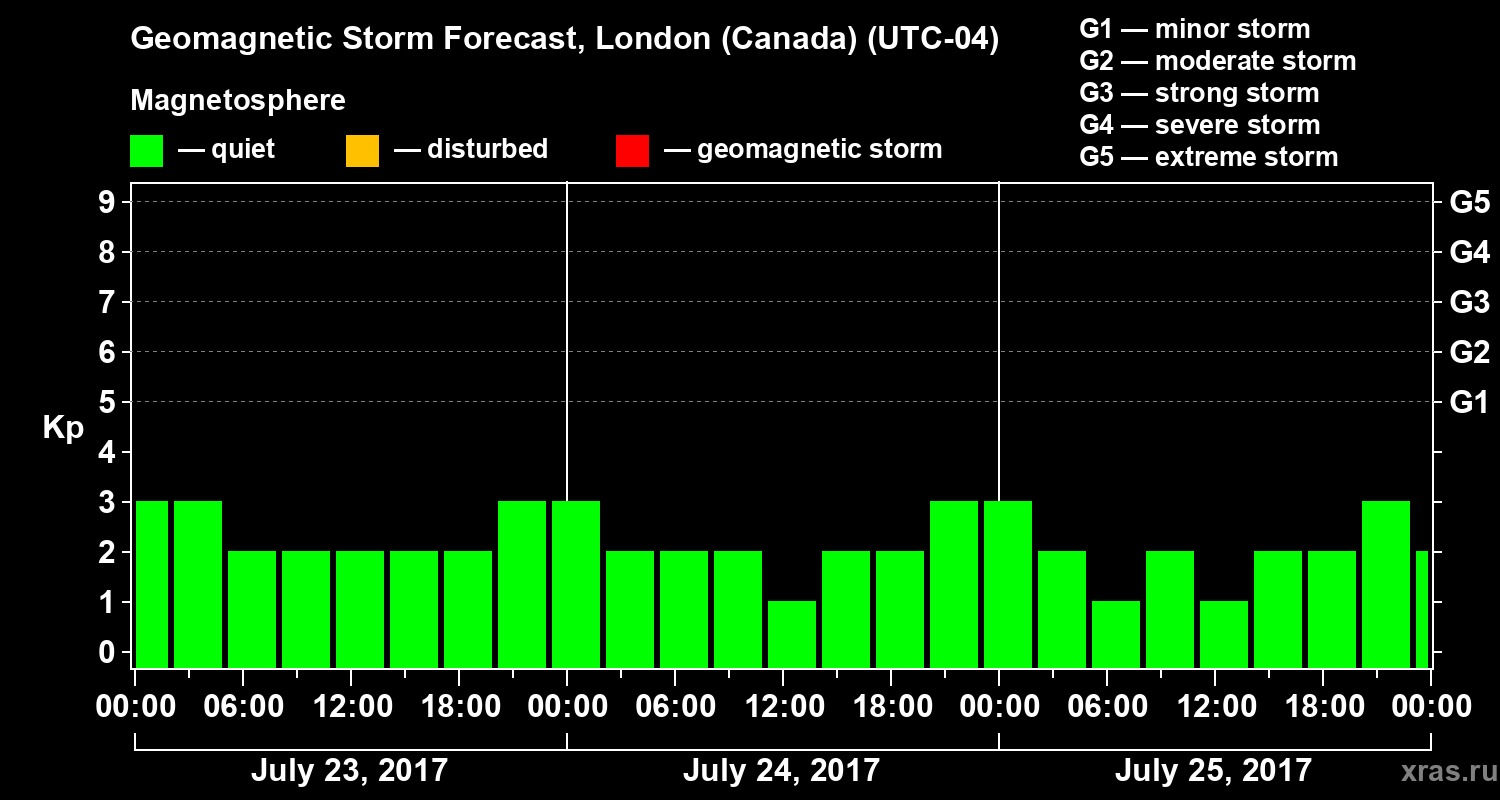 Geomagnetic storm forecast in London (Canada) for Jul 23, 2017