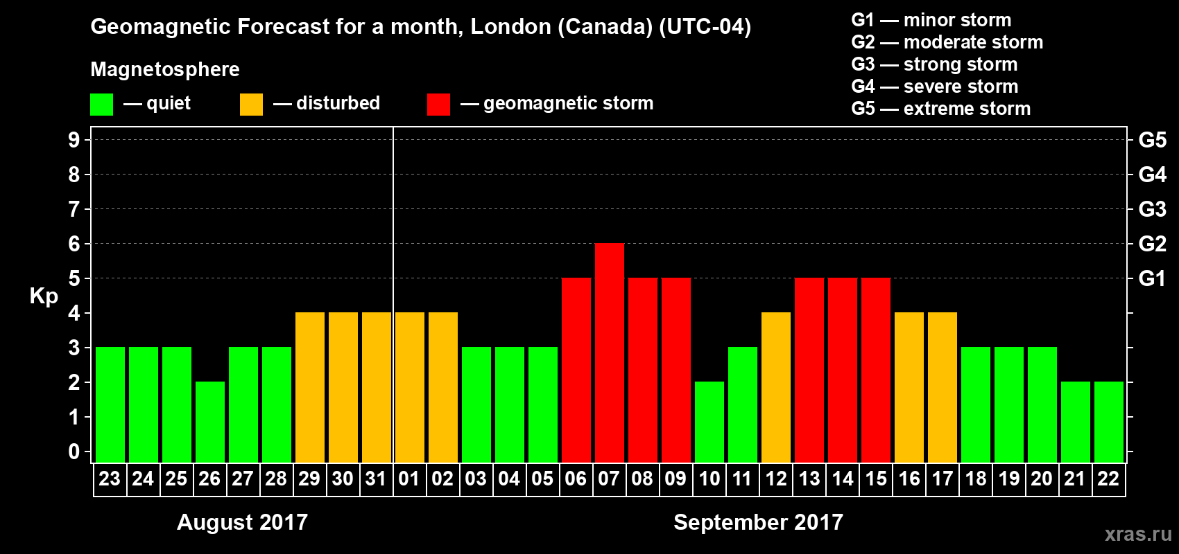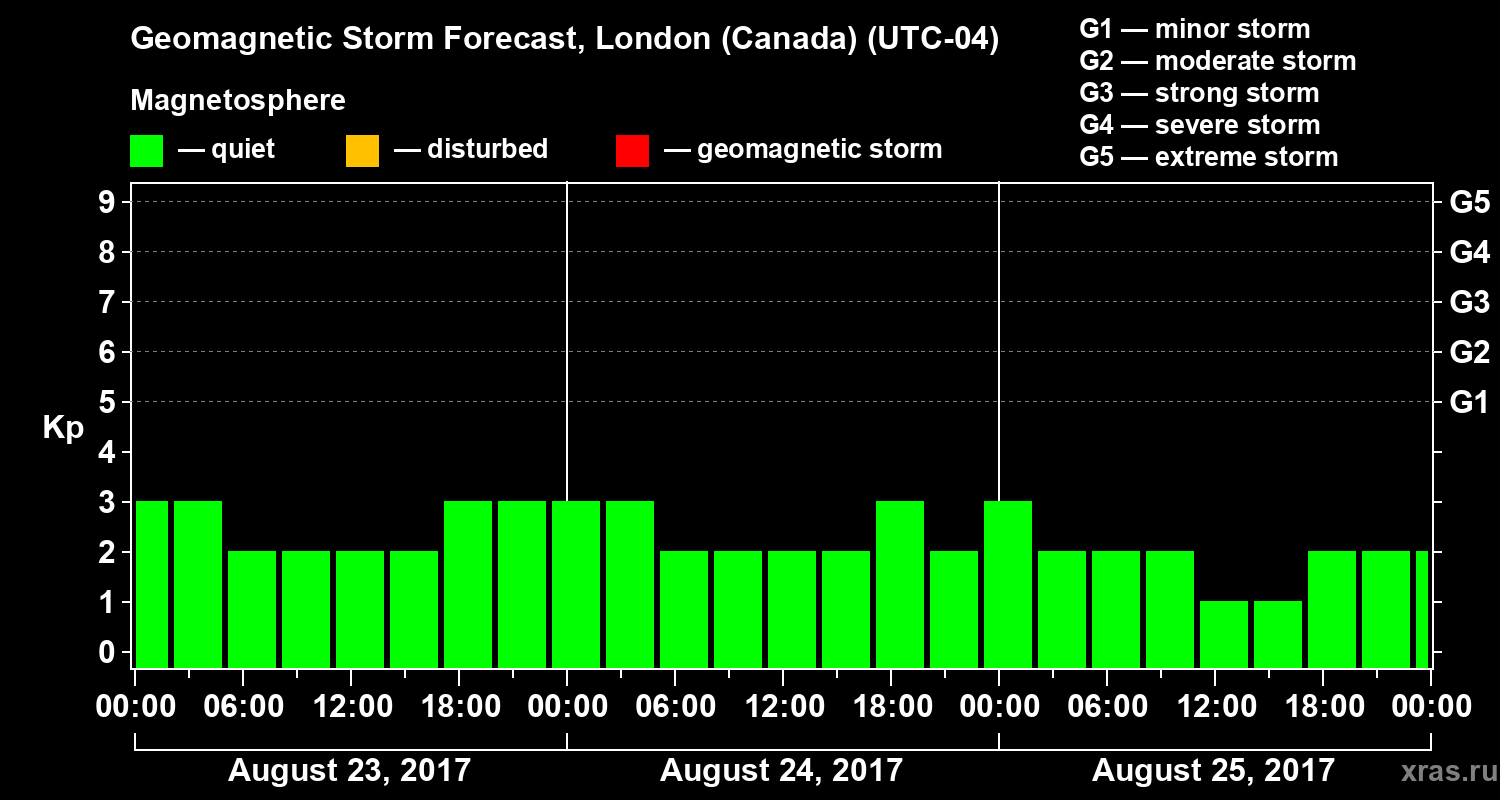 Geomagnetic storm forecast in London (Canada) for Aug 23, 2017