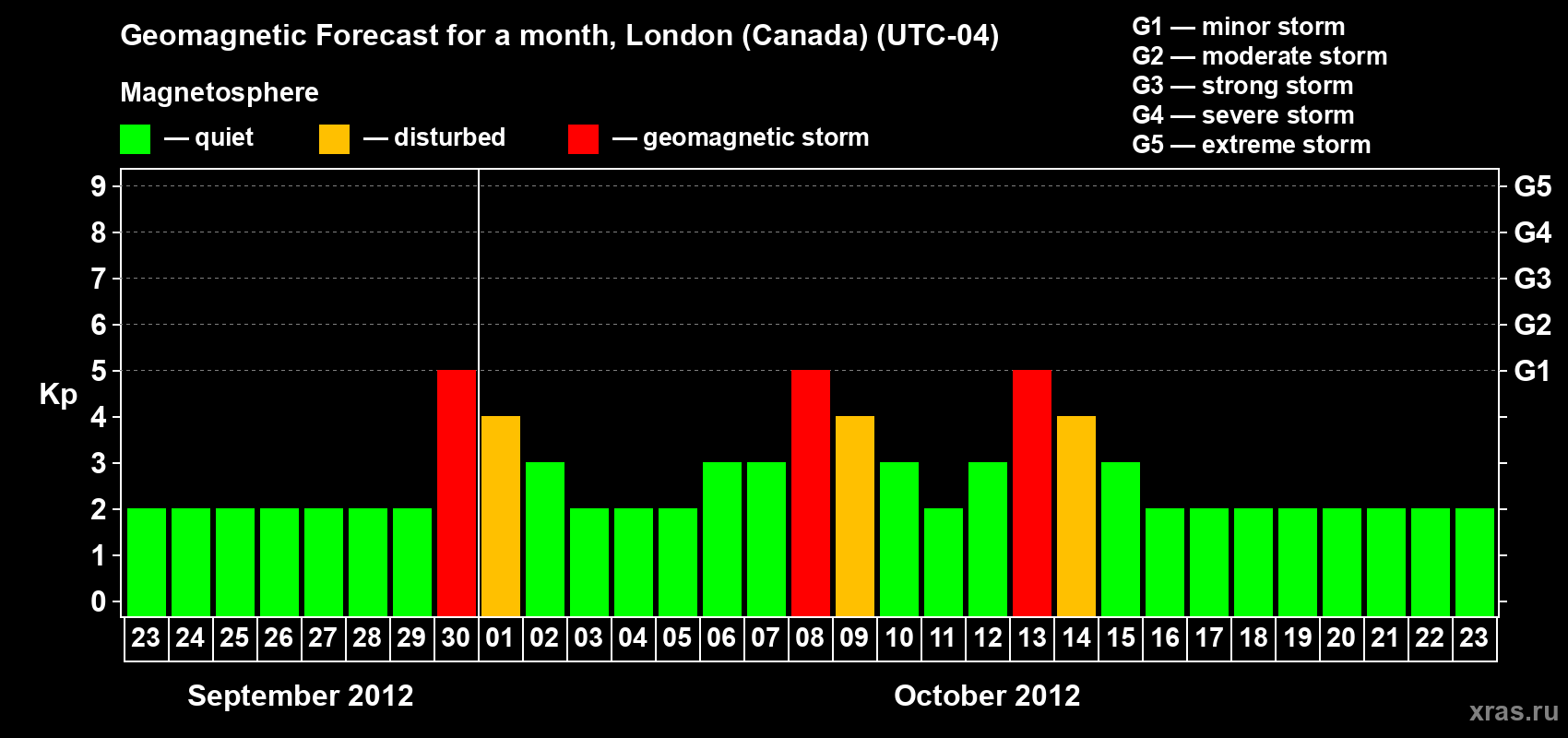 Geomagnetic storm forecast in London (Canada) for Sep 23, 2012
