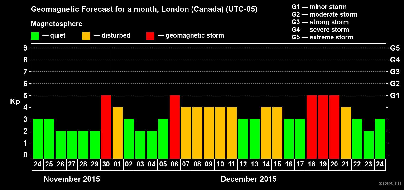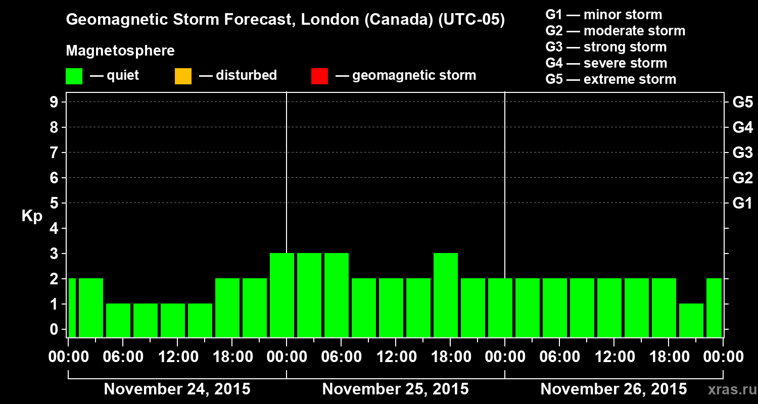 Geomagnetic storm forecast in London (Canada) for Nov 24, 2015