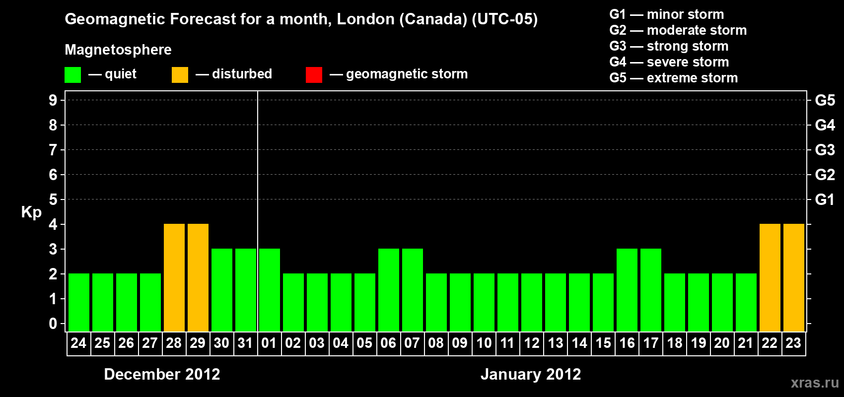 Geomagnetic storm forecast in London (Canada) for Dec 24, 2011