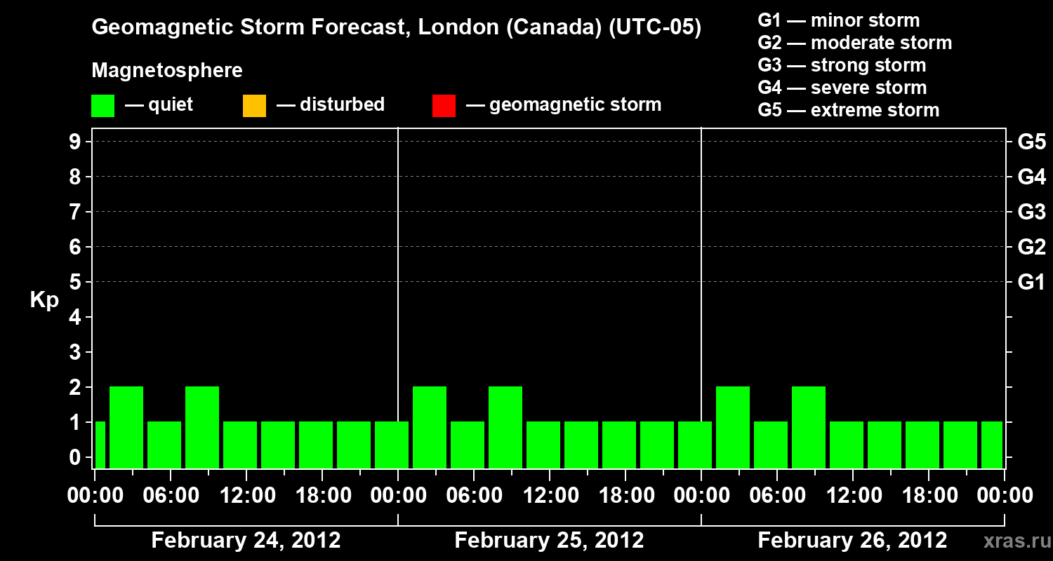 Geomagnetic storm forecast in London (Canada) for Feb 24, 2012